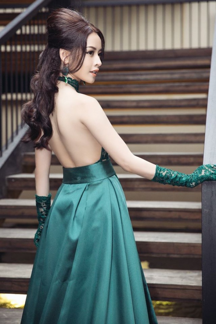 Không những xuyên thấu, chiếc váy còn cắt xẻ táo bạo ở phần lưng để Chi Pu khoe trọn tấm lưng trần gợi cảm.