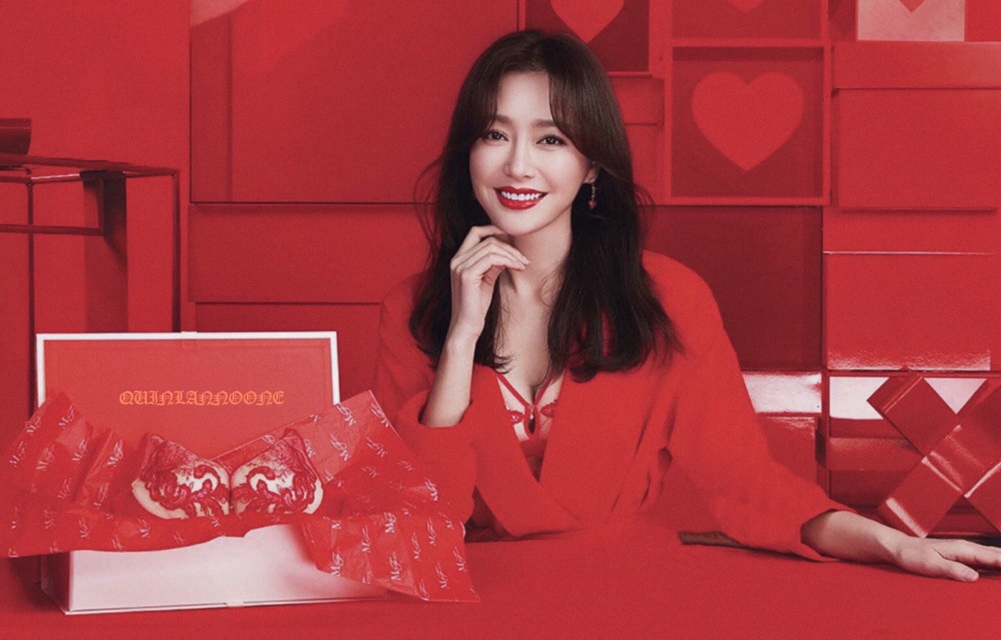 Tần Lam xinh đẹp quyến rũ trong bộ ảnh quảng cáo nội y đỏ rực lấp ló vòng 1
