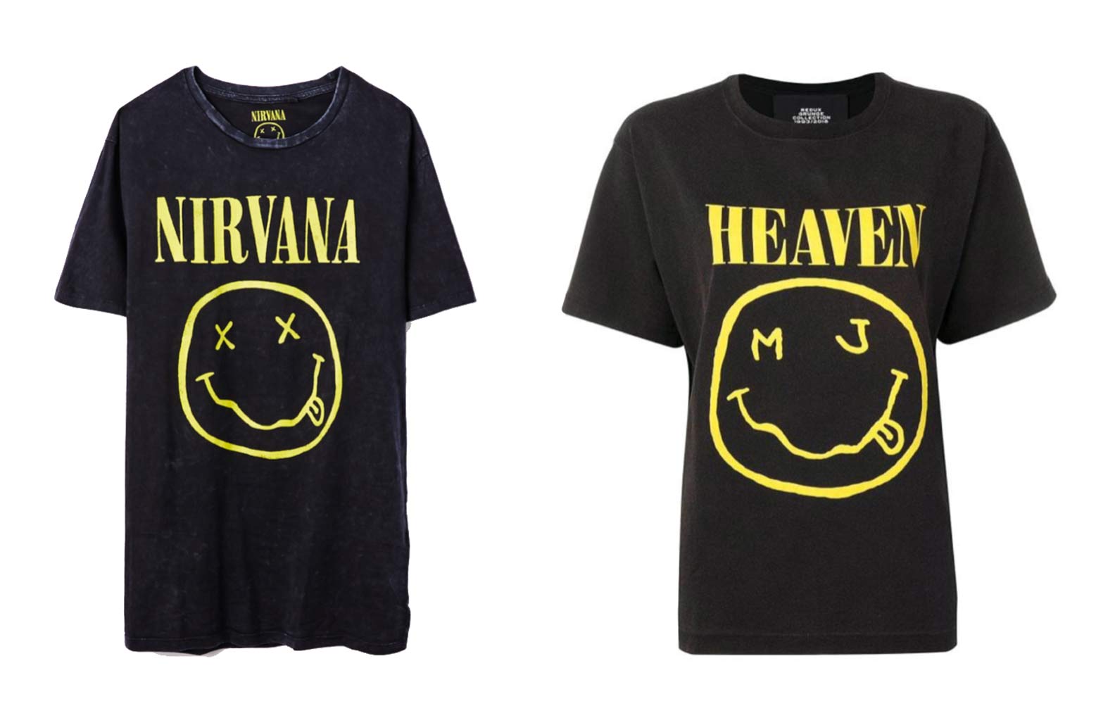 Hai chiếc áo giống nhau đến 99% giữa áo thun của nhóm Nirvana và áo phông của Marc Jacobs.