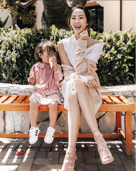 Cặp đôi mẹ con nhà fashionista người Mỹ gốc Hàn kết hợp với nhau vô cùng ăn ý trong những bộ ảnh thời trang cũng như đời thường. Phong cách thời trang của Chriselle và bé Chloe thể hiện chất phóng khoáng với những gam màu trung tính.