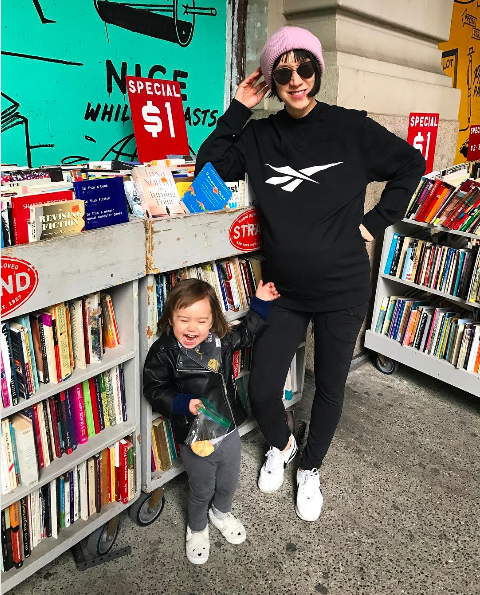 Cô nhóc dễ thương hết nấc, luôn tươi cười và kháu khỉnh. Ngay cả khi dạo phố hai mẹ con vẫn tông xuyệt tông màu đen với nhau.