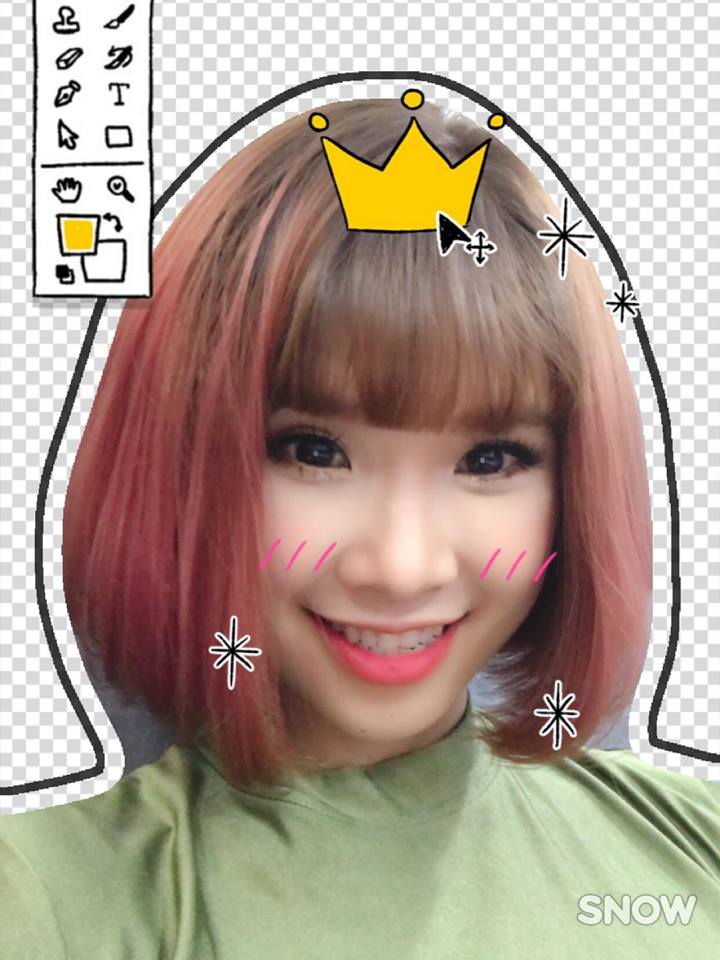 Chụp ảnh tạo dáng dễ thương chưa đủ, Khởi My còn sử dụng thêm các biểu tượng đáng yêu chèn vào bức hình của mình. Có ai mà ngờ được, đây là hình ảnh của 1 phụ nữ đã có gia đình không?