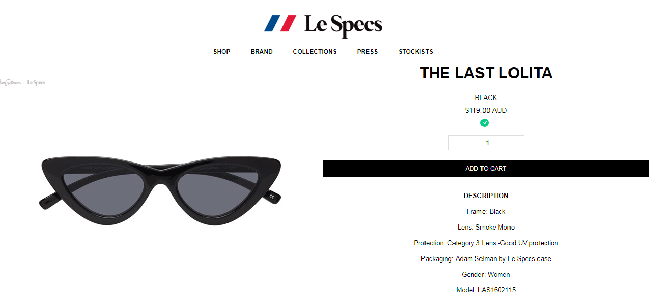 Mẫu kính của Khánh Linh đến từ thương hiệu Le Specs, có giá trên dưới 2 triệu đồng.