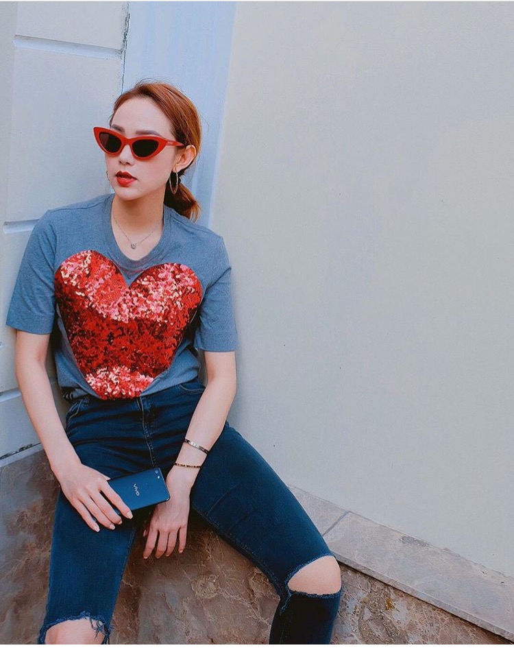 Bảo Anh kể từ khi cắt tóc ngắn thì cũng đã chuyển hướng sang phong cách thời trang cá tính. Và kính mắt mèo là item không thể thiếu của cô nàng.
