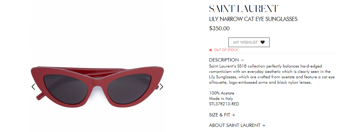 Mẫu kính mắt mèo của Kỳ Duyên thuộc thương hiệu Yves Saint Laurent.