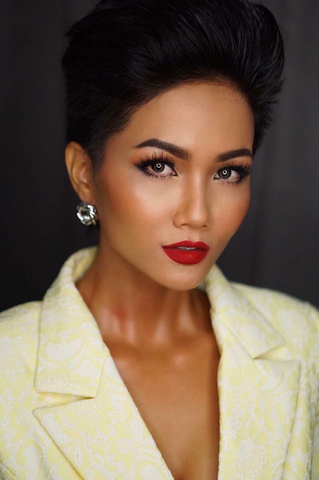 Với mái tóc ngắn cá tính, H'Hen Niê sẽ dễ dàng làm nên sự khác biệt. Chưa dừng lại ở đó, nếu chọn kiểu tóc uốn xoăn hay chải phồng thì H'Hen Niê có thể “hack” chiều cao thành công để không bị “lép vế” khi đứng cạnh các đối thủ.