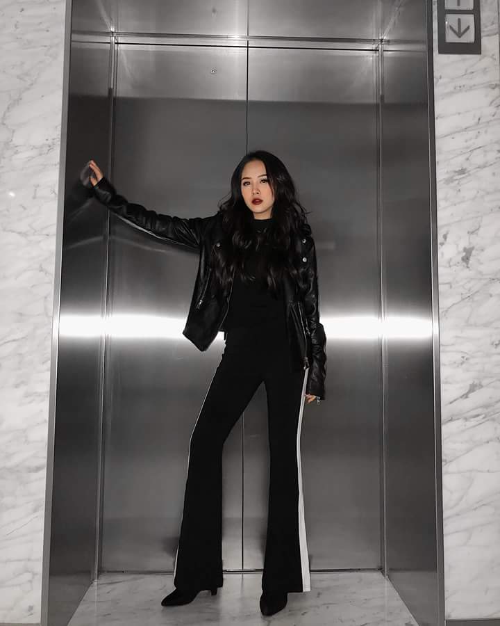 Bên cạnh đó, một bí quyết ăn mặc các tín đồ thời trang có thể học hỏi là việc chỉ phối cao nhất hai màu trên một outfit, việc này giúp tỉ lệ chiều cao cô nàng được tăng lên đáng kể.