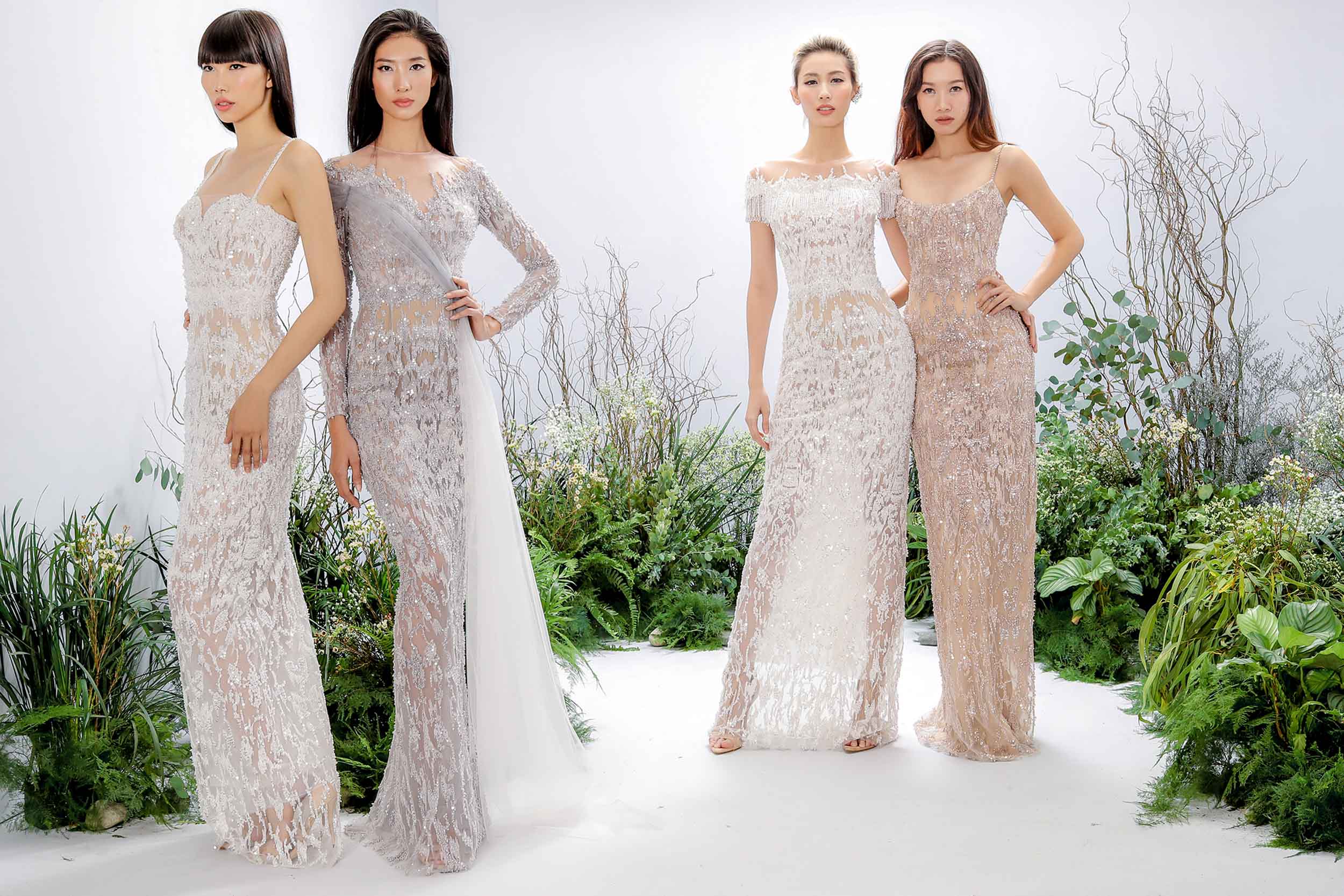 Ngoài việc mang đến vẻ trẻ trung bằng những gam màu nhã nhặn như kem, trắng hay hồng nude, nhà thiết kế cũng thể hiện nét gợi cảm của phái nữ qua phom dáng ôm sát cơ thể.