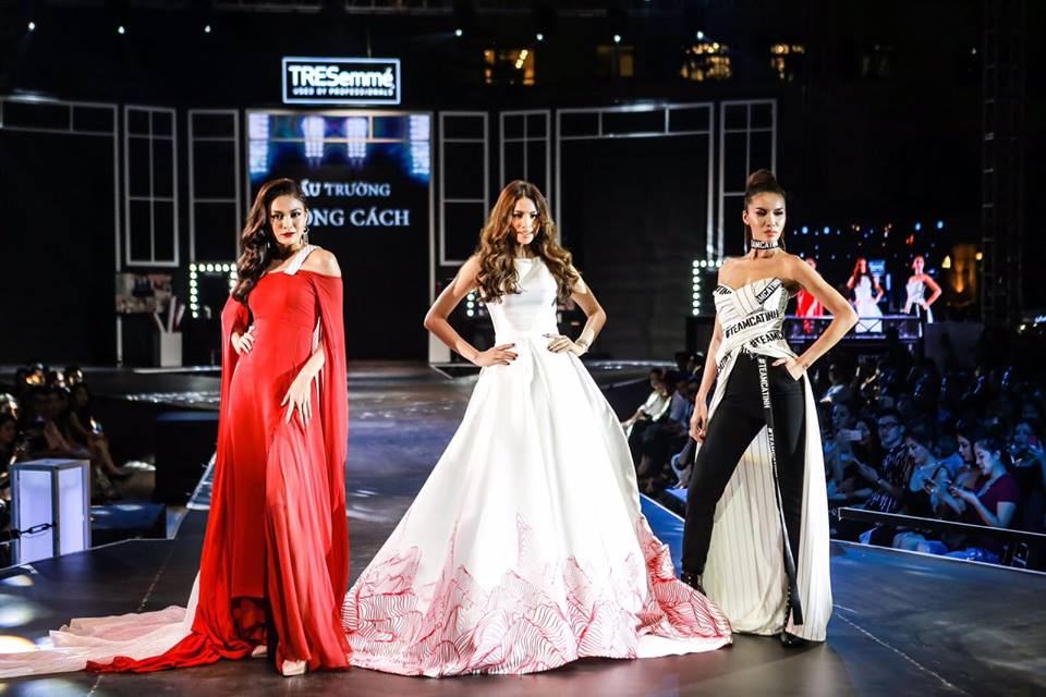 Minh Tú sánh bước cùng HHHV Phạm Hương trong một chương trình về người mẫu.