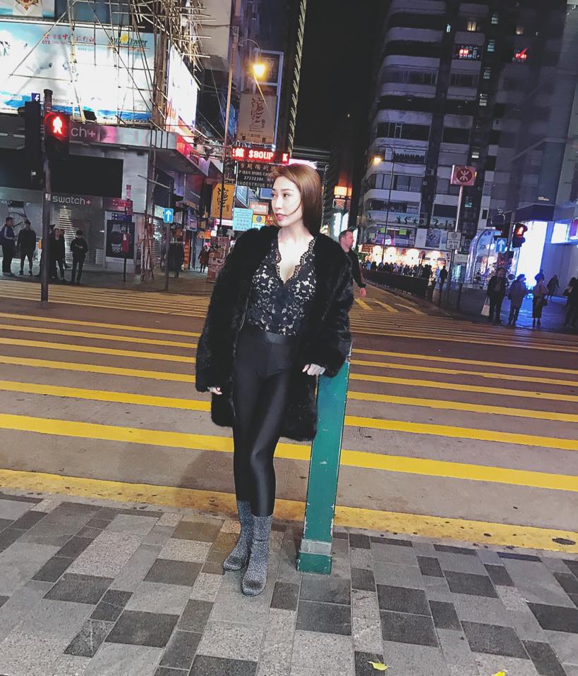 Khổng Tú Quỳnh cũng lựa chọn 1 bộ cánh tông đen khi xuống phố gồm áo lông đen dáng dài, đi cùng áo ren trễ nải.