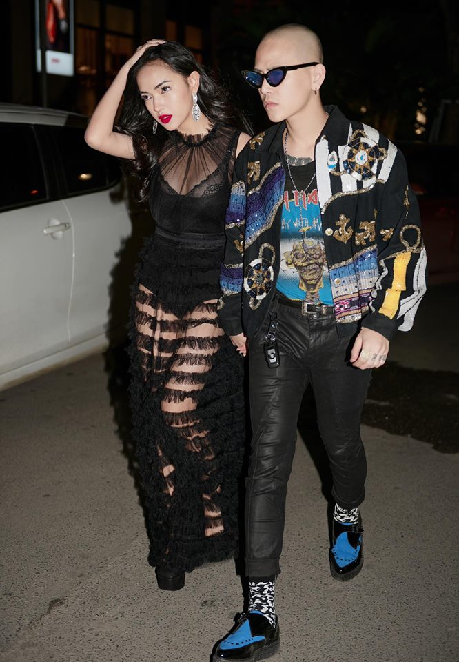 Cả cây váy ren đen gợi cảm của Châu Bùi hoàn toàn phù hợp với cách diện layer của Decao. Chỉ cần sử dụng màu sắc giống nhau, các cặp đôi đã hoàn toàn nổi bật khi xuống phố ngày Valentine.