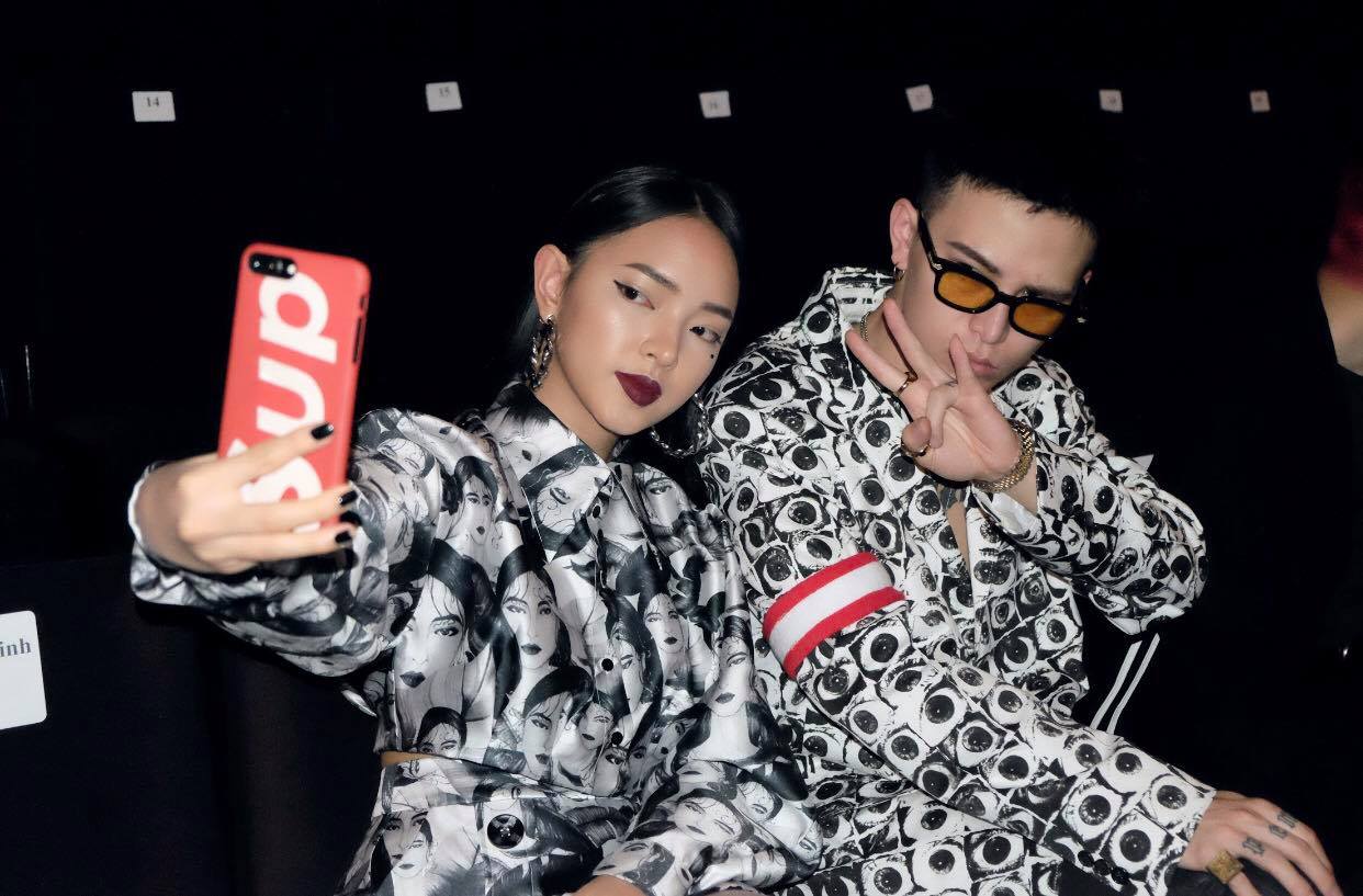 Tham dự sự kiện, cả hai dù diện đồ đôi giống nhau nhưng mỗi người đều có nét đặc trưng riêng. nếu Châu Bùi lựa chọn áo sơ-mi in họa tiết khuôn mặt thì Decao lại cực kì cá tính với hoodie họa tiết con mắt cùng băng tay đỏ nổi bật.
