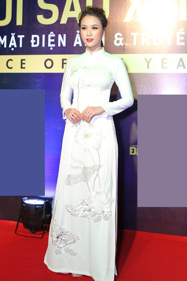 Sam trong sự kiện mới đây nhất cũng diện áo dài trắng họa tiết hoa sen. Chỉ cần trang phục giản dị, cô nàng diễn viên đã trở nên cực xinh đẹp.