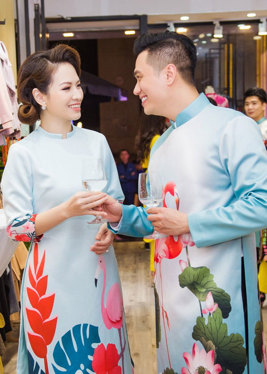 Hai diễn viên nổi tiếng trong bộ phim Người phán xử: Đan Lê và Việt Anh cũng vừa diện trang phục áo dài cách tân, rạng rỡ tham dự một sự kiện.