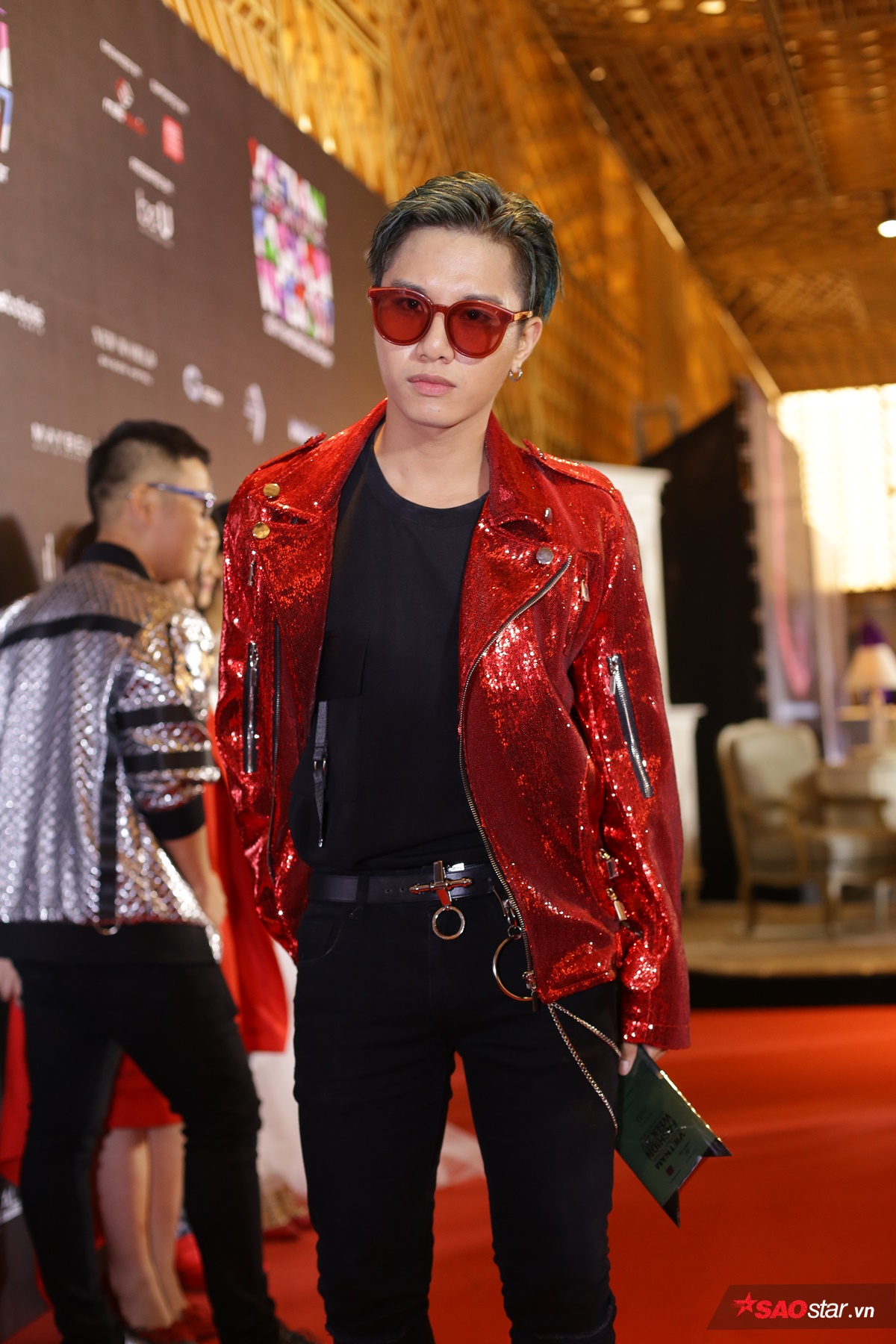 Đăng Dũng chất ngầu với áo và phụ kiện cùng tông đỏ chót khiến anh nổi bật chẳng kém bất kỳ mỹ nhân nào.
