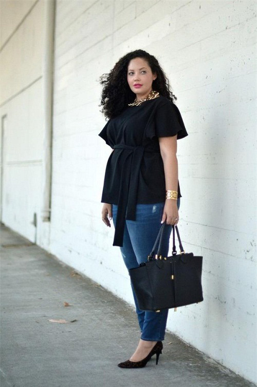 Màu đen luôn là sự lựa chọn hoàn hảo, tạo hiệu ứng thị giác thon gọn cho người tròn trịa.