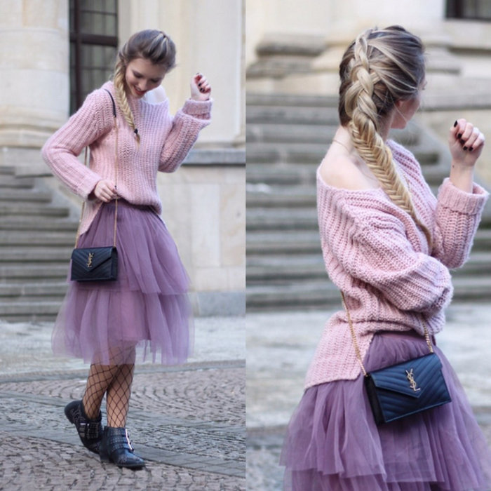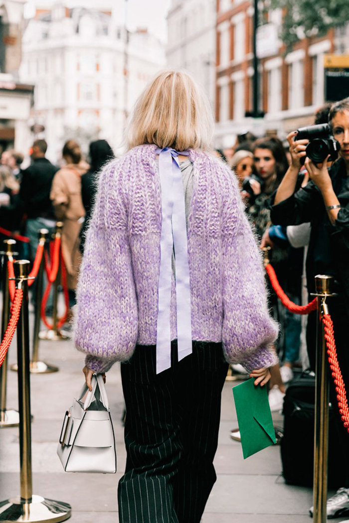 Một chiếc áo len màu tím cũng là gợi ý không tồi trong những ngày lạnh giá thế này.