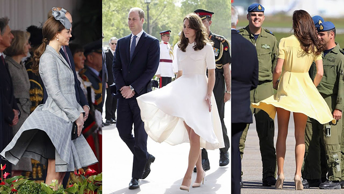 Công nương Kate rất nhiều lần bị gió thổi tốc váy