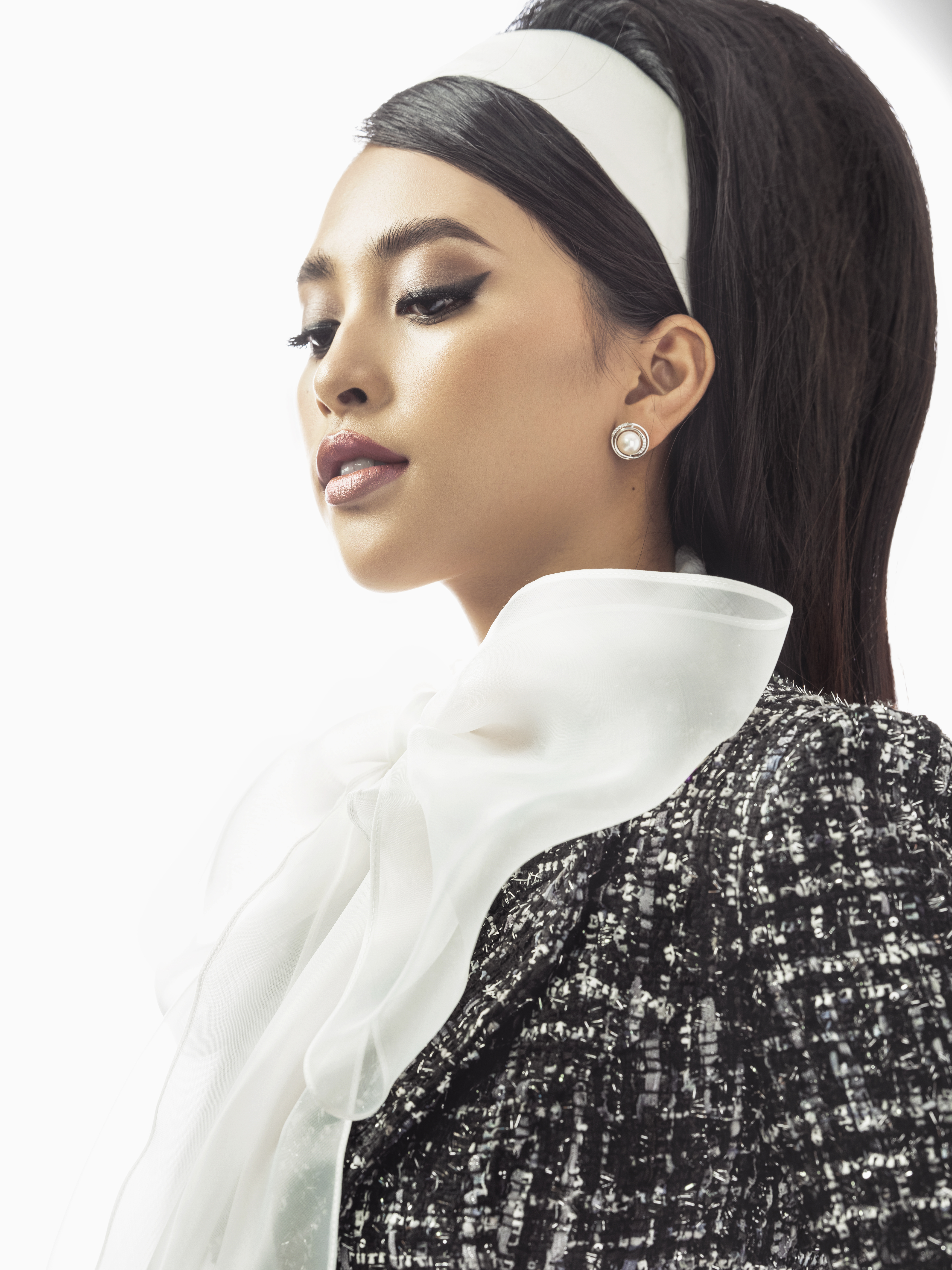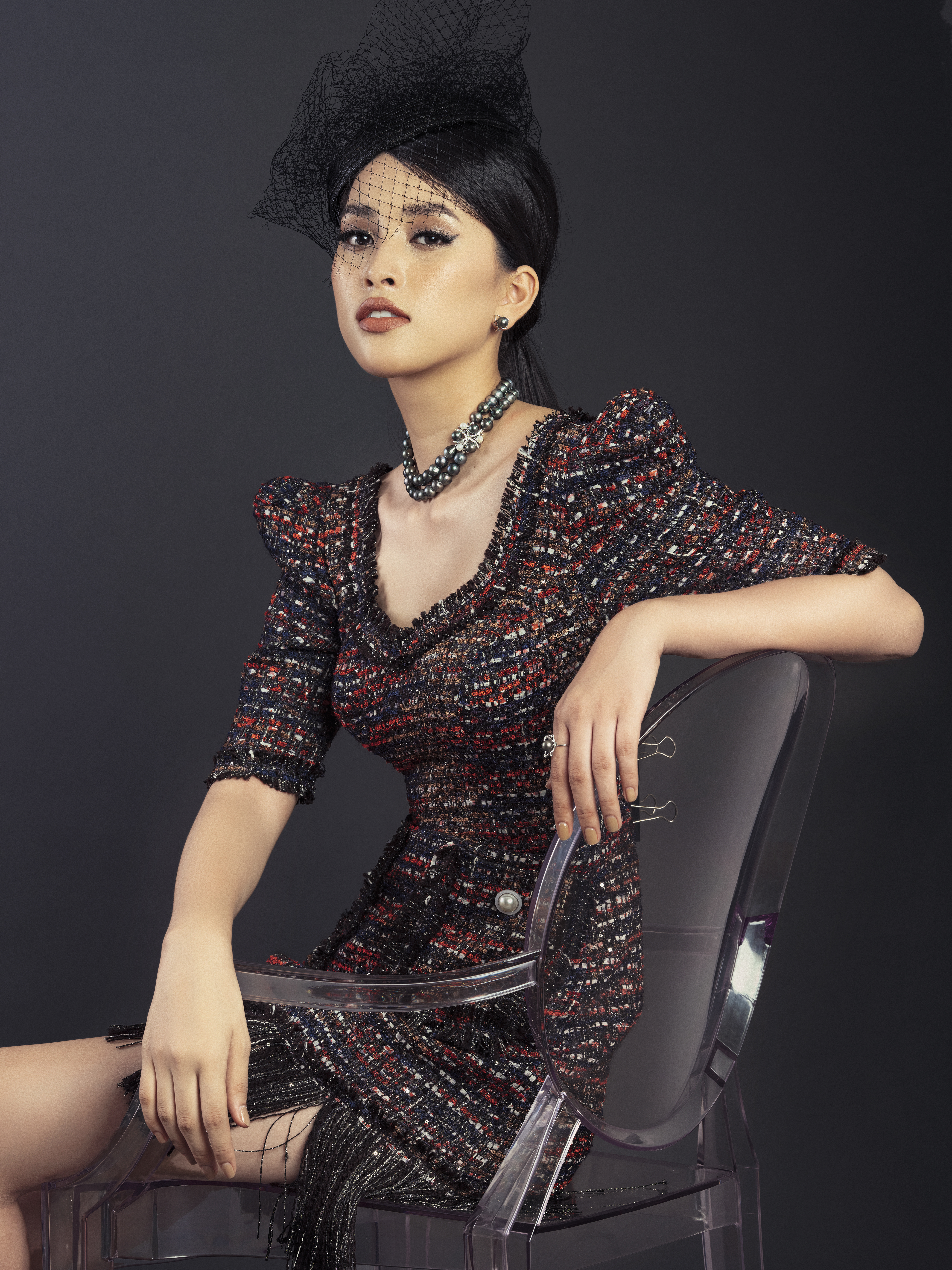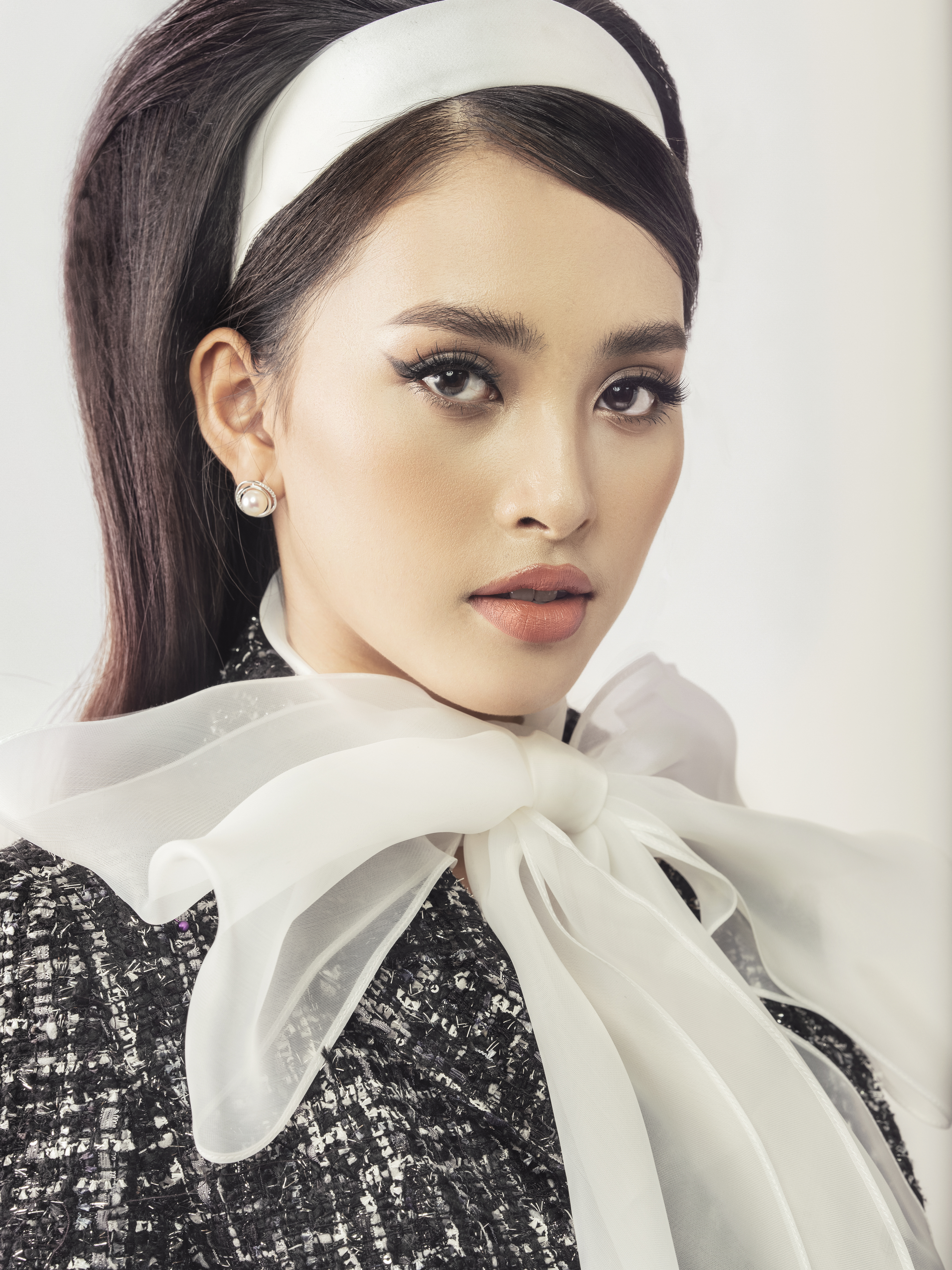 Vẻ đẹp mặn mà cùng tạo hình ấn tượng của Tiểu Vy trong những tông màu chủ đạo là trắng, đen, hồng nhạt, xám, xanh thể hiện được sự thăng hạng nhan sắc của cô ở thời điểm hiện tại. Qua những dáng pose thần thái, Tiểu Vy đầy kiêu kỳ trong bộ sưu tập mới này đã truyền tải trọn vẹn những ý nghĩa mà nhà thiết kế muốn hướng đến cho người xem.