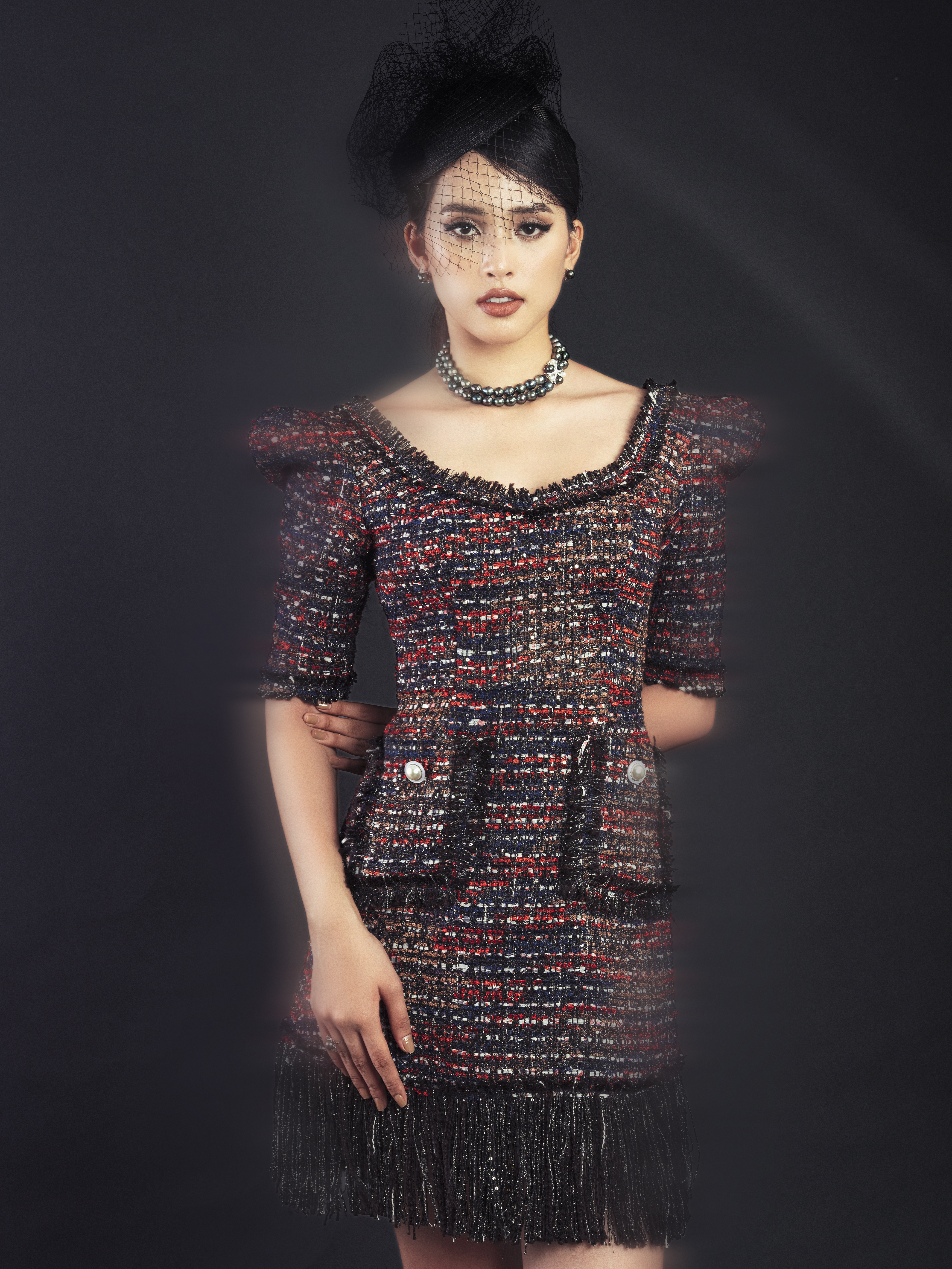 NTK chia sẻ về bộ sưu tập lần này được làm ra với chất liệu vải tweed phối cùng với những chi tiết đính kết tinh xảo, rút tưa sợi vải tạo nẹp viền, đính viền nổi 3D giúp cho bộ trang phục trở nên đắt giá.