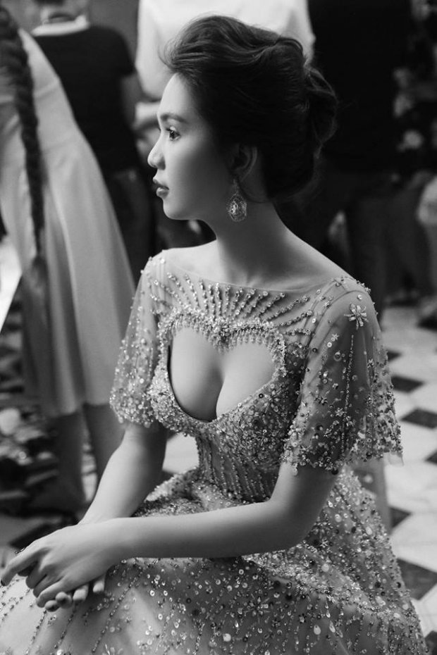 Dù Ngọc Trinh rất xinh xắn và nữ tính với váy ren cúp ngực điệu đà nhưng…vòng 1 đâu mất rồi?