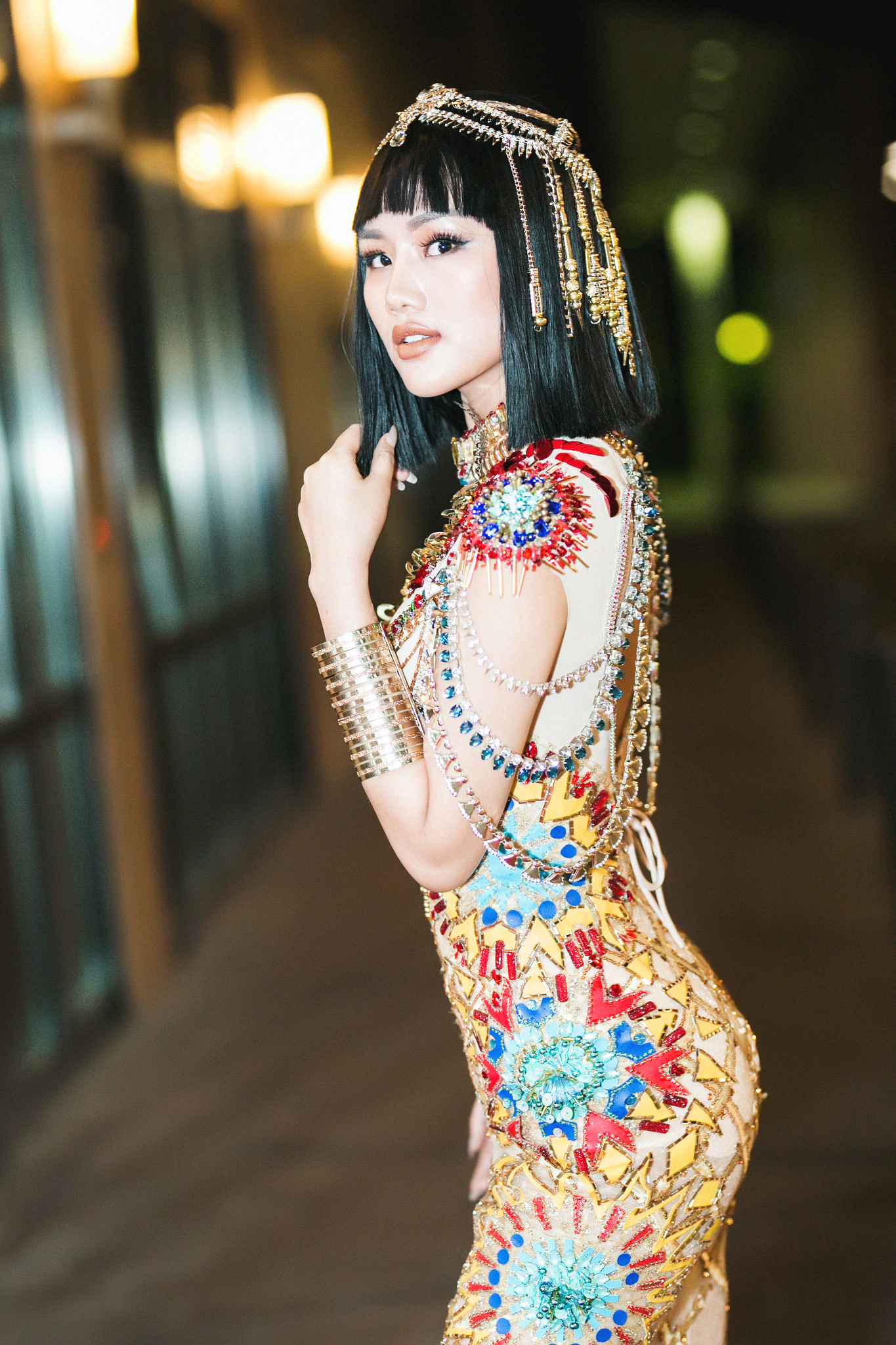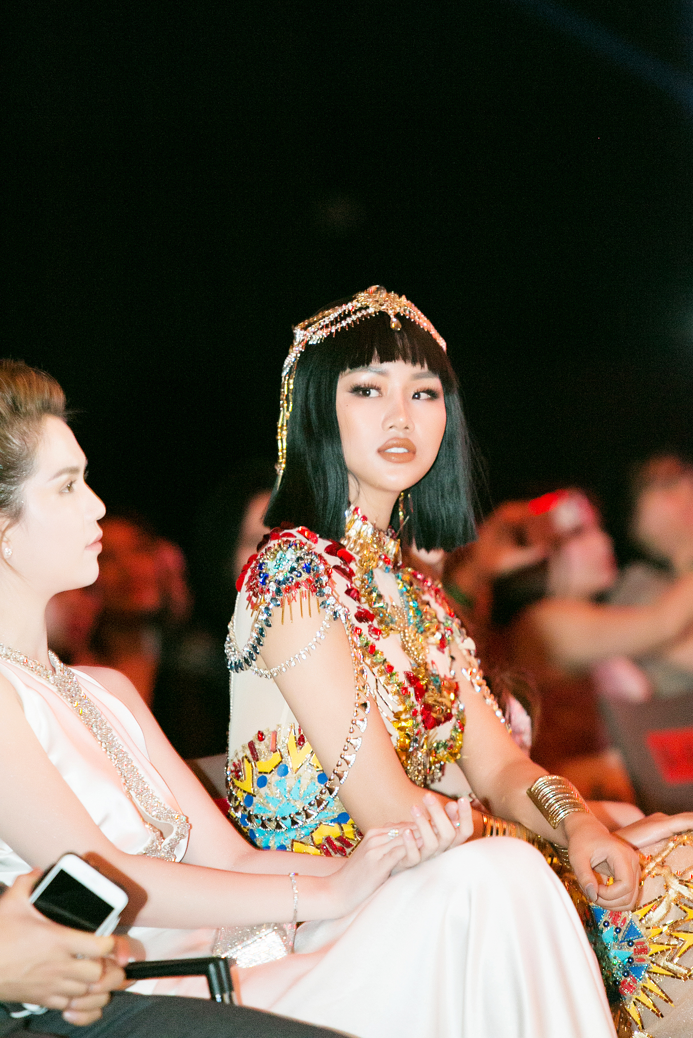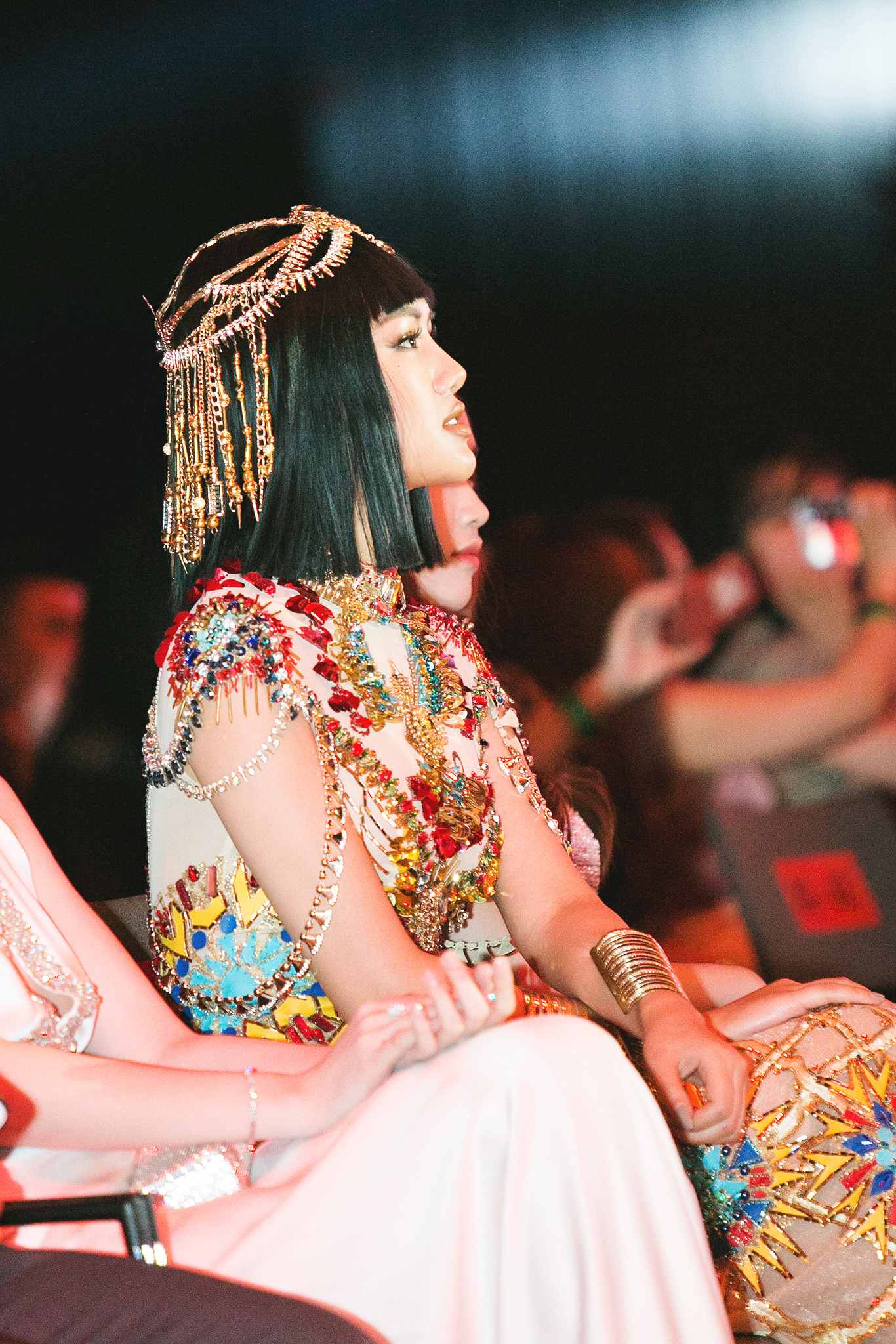 Ngọc Trinh năm nay có vẻ “thu mình”. Người đẹp đơn giản hết mức, từ thảm đỏ đến sân khấu. Mà có cố cũng bị lu mờ thôi, bởi người chiếm trọn spotlight là “Nữ hoàng Ai Cập”. Đã là Nữ hoàng, thì ai mà qua!