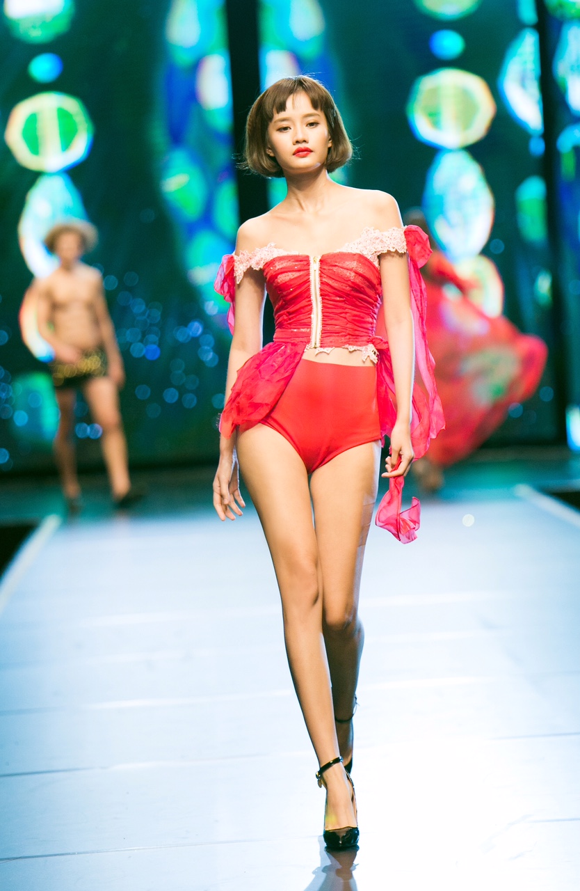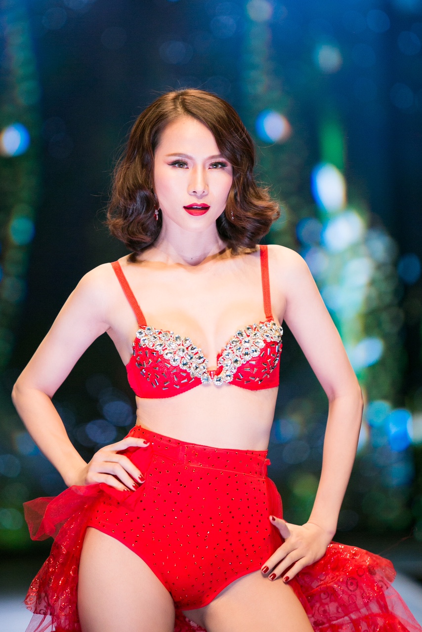 Kim Chi nổi bật trong bộ nội y đỏ trễ vai.