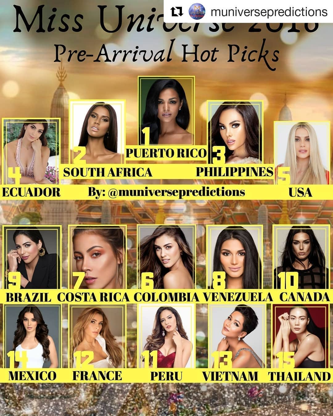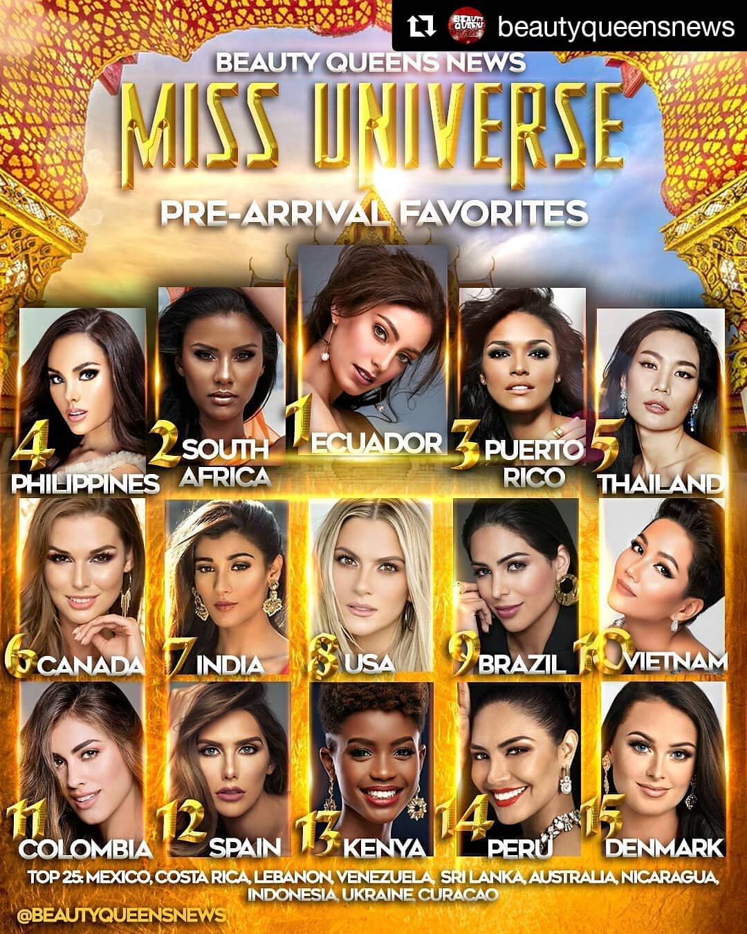 Khi thí sinh đã bắt tay vào cuộc chiến không khoan nhượng, các chuyên trang sắc đẹp uy tín cũng bắt đầu nghiên cứu và đưa ra những bảng dự đoán kết quả đầu tiên cho Miss Universe 2018. Giữa “rừng hoa” hương sắc, đại diện Việt Nam - H'Hen Niê đang đứng ở đâu trong mắt giới chuyên gia?