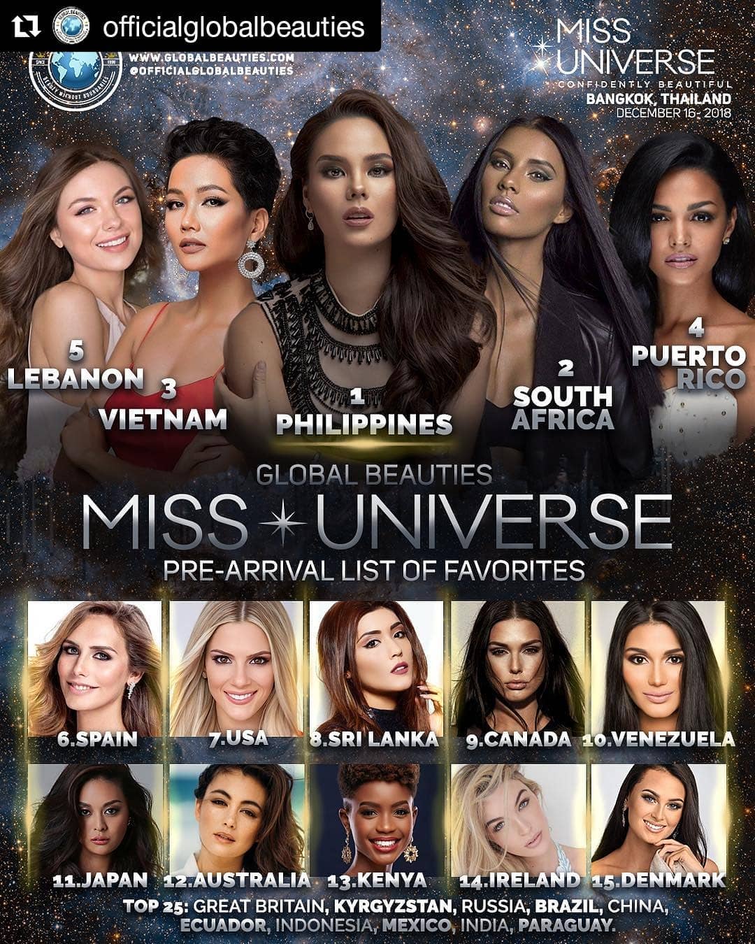 Ở hầu hết các bảng xếp hạng, dự đoán, đại diện Việt Nam luôn được xếp vào nhóm ứng viên mạnh và có khả năng cạnh tranh vương miện. Trong đó, không thể không nhắc tới hai chuyên trang sắc đẹp hàng đầu thế giới Global Beauties và Missosology.
