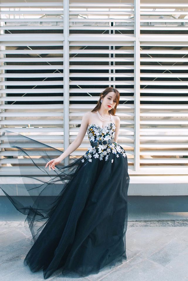 Mỹ nhân Tân Cương khoe sắc đẹp rạng ngời của mình trong chiếc váy hoa Elie Saab cúp ngực quyến rũ và gợi cảm