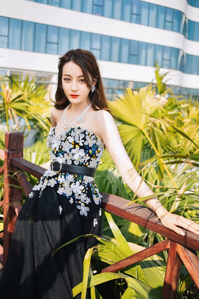 Kiểu váy cùng tông makeup đằm thắm, ngọt ngào đã khiến Địch Lệ Nhiệt Ba đẹp như tựa nàng tiên hoa vì mọi thứ cô khoác trên mình đều đẹp như một bức tranh