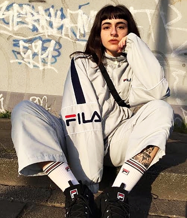 Cô gái với gương mặt cá tính hẳn là fan cuồng Fila rồi, nguyên set từ đầu đến chân phủ ngập thương hiệu này, trang phục của cô chính là minh chứng cho việc chỉ đồng bộ đơn giản thì không cần chọn gam màu nổi bật cũng tự khắc hút mắt người nhìn.
