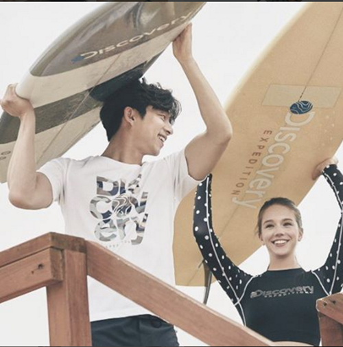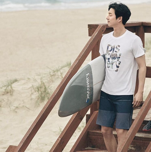 Gong Yoo chọn trang phục sporty cho mỗi lần tham gia lướt ván.