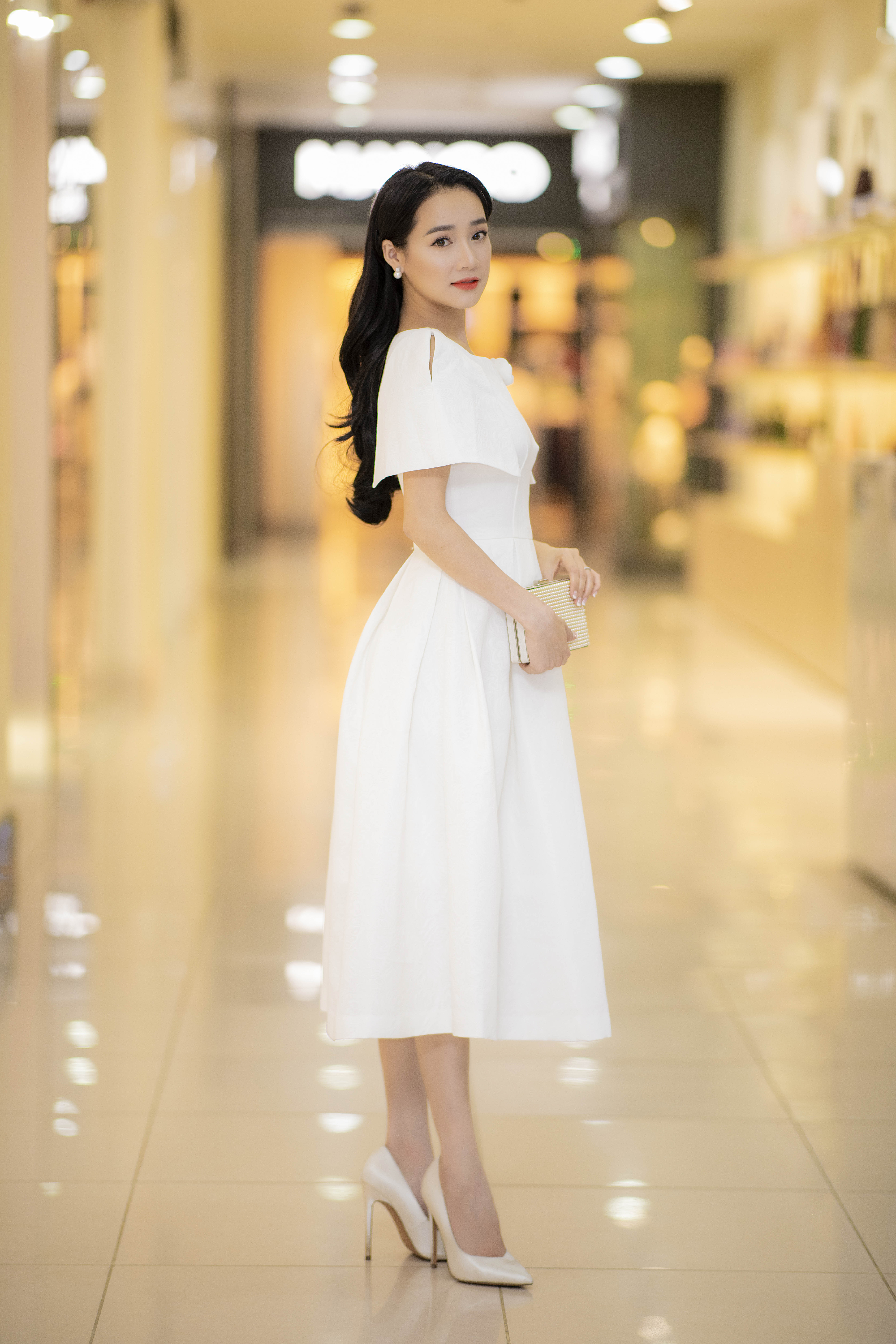 Nhã Phương thay 3 bộ váy trong sự kiện này. Cô chọn tất cả đều màu trắng theo tinh thần của event. Hai bộ váy đầu là đầm xòe bánh bèo điệu đà dễ thương rất hợp với phong thái của Nhã Phương.
