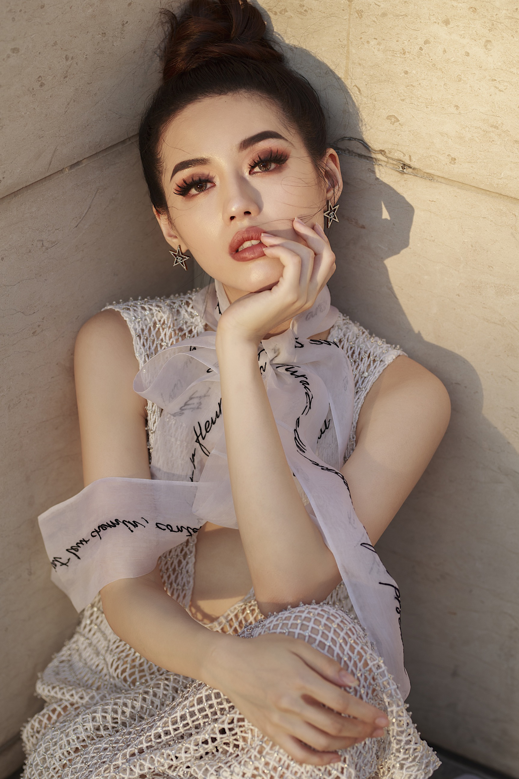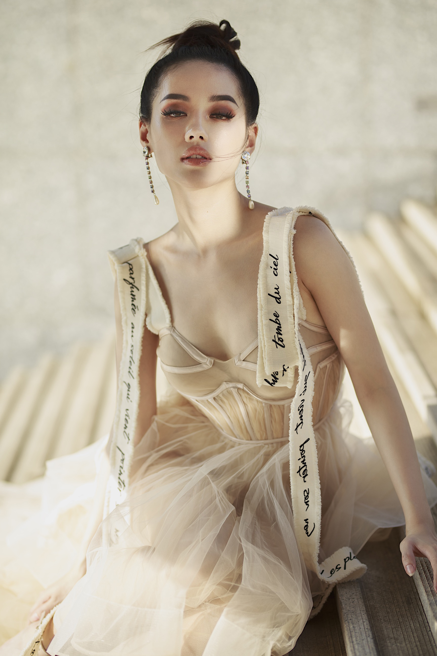 Trong bộ ảnh mới, “nữ hoàng look book” Khánh Linh The Face khoe vẻ đẹp mong manh, nhẹ nhàng khiến người đối diện chẳng thể rời mắt.