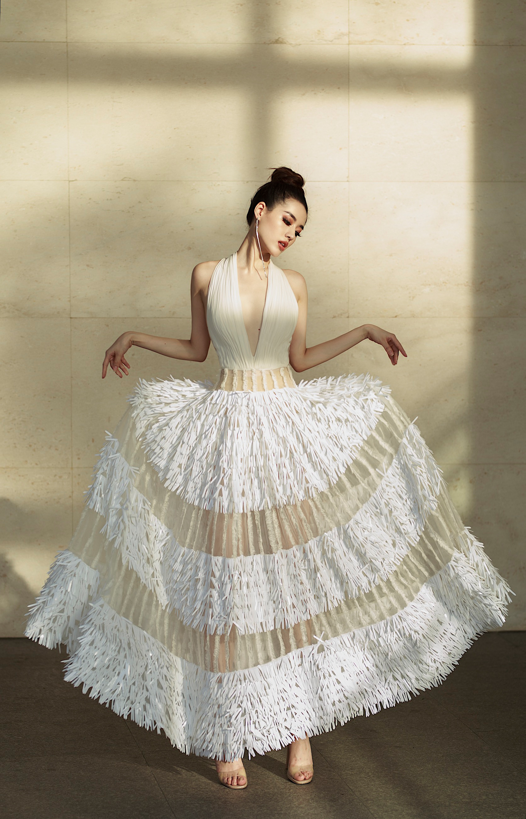 Cùng ngắm nhìn những hình ảnh đẹp khác của Khánh Linh trong trang phục Công Trí.
