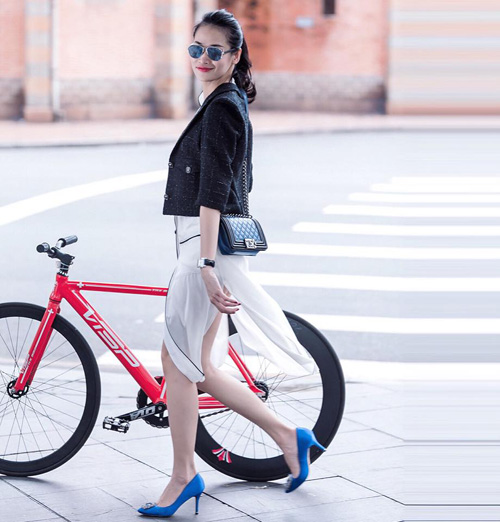 Minh Hằng lại ưa chuộng mẫu vòng này với gam màu sáng, nổi bật nét trẻ trung, hiện đại của cô.