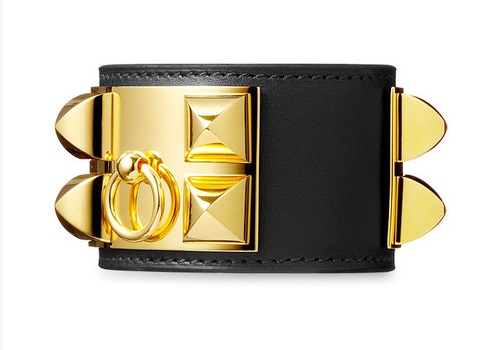Chiếc vòng tay nổi đình đám của Hermes là một trong những món phụ kiện hot đang được các tín đồ thời trang thế giới ưa chuộng. Thiết kế nạm đính ấn tượng, bản to, dày, chất liệu da đa dạng, phù hợp cho những cô nàng đi theo phong cách menswear. Giá của sản phẩm này rơi vào khoảng từ 1.500$ - 1.800$ (33 - 39 triệu đồng 1 chiếc), tùy chất liệu.