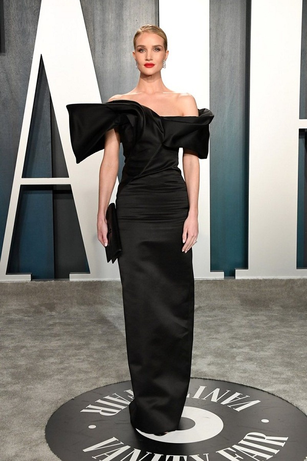 Siêu mẫu giàu nhất nhì Anh Quốc Rosie Huntington-Whiteley kín đáo trong bộ váy đen có thiết kế giản dị cùng phần ngực dáng phồng