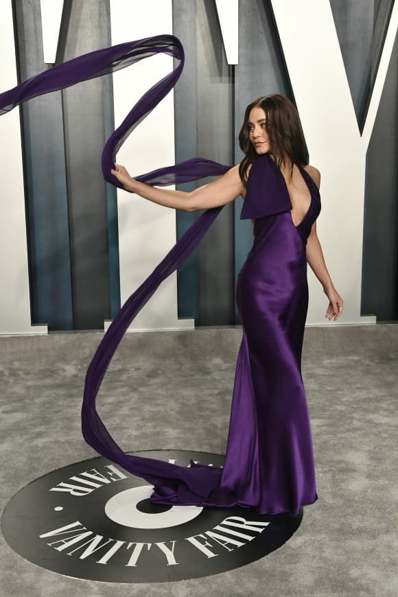 Vanessa Hudgens như một nàng công chúa “tím lịm” lụa là đến từ Vera Wang, dáng váy xẻ ngực cùng phần dây váy tung bay hút mắt