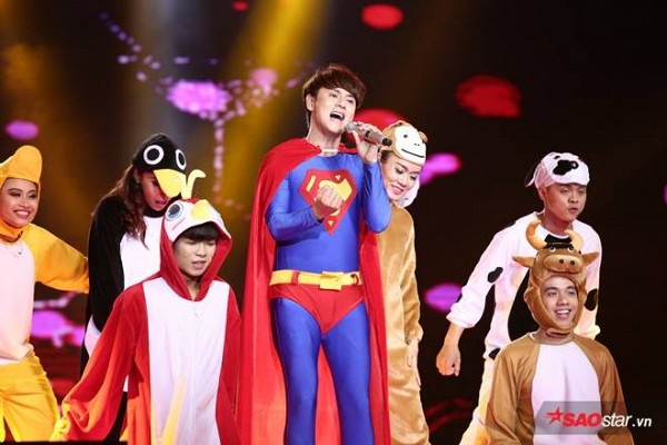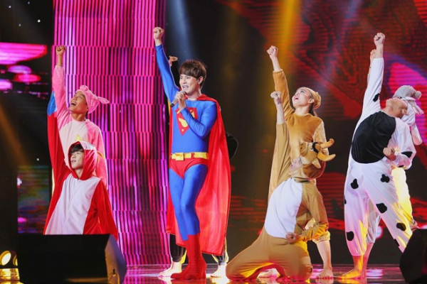 Ưng Đại Vệ khiến mọi người như vỡ òa cảm xúc khi xuất hiện cùng hình ảnh Super man trong bài hát Papa siêu nhân để dành tặng cô con gái bé bỏng của anh. Đôi lúc chỉ cần diện những trang phục khác biệt bạn cũng sẽ trở thành “trung tâm của cả vũ trụ” rồi!
