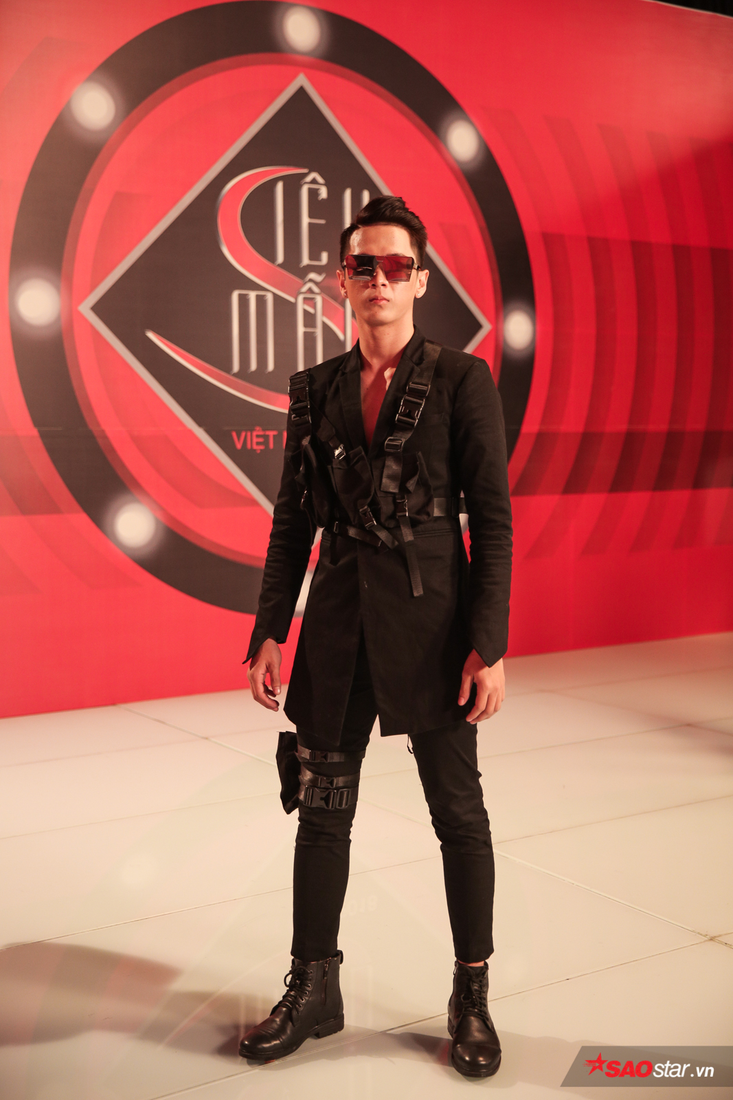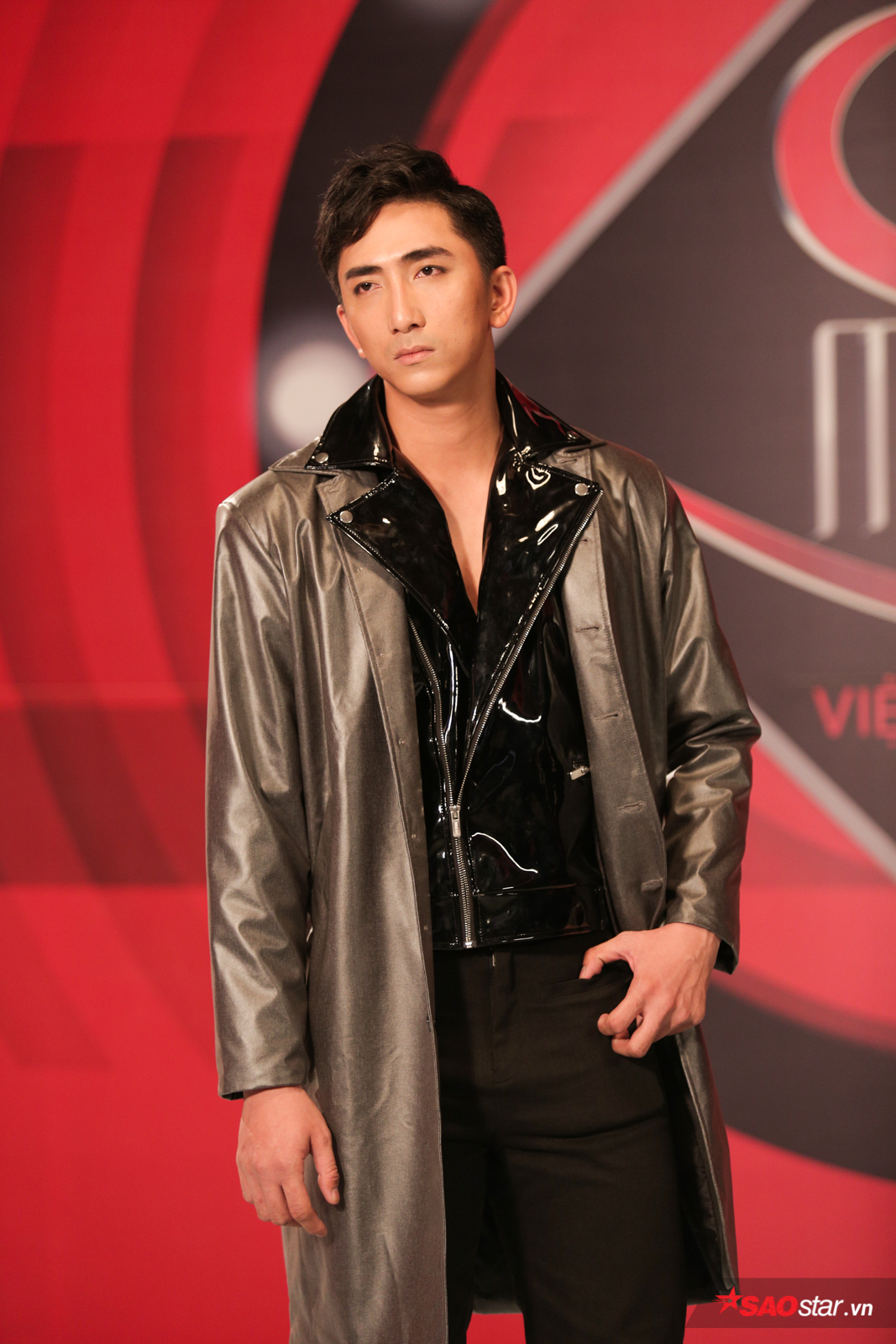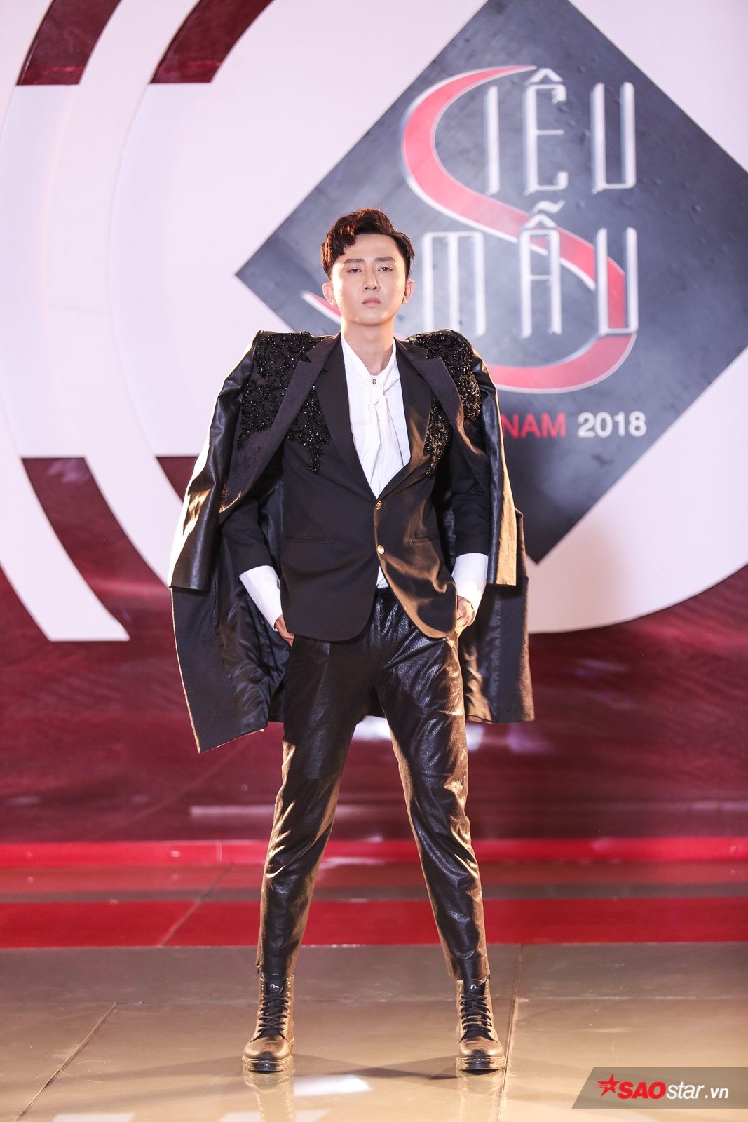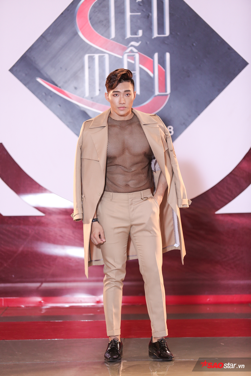 Công Sơn với trang phục suit nổi bật là áo lưới đen bên trong khoe cơ thể rắn chắc