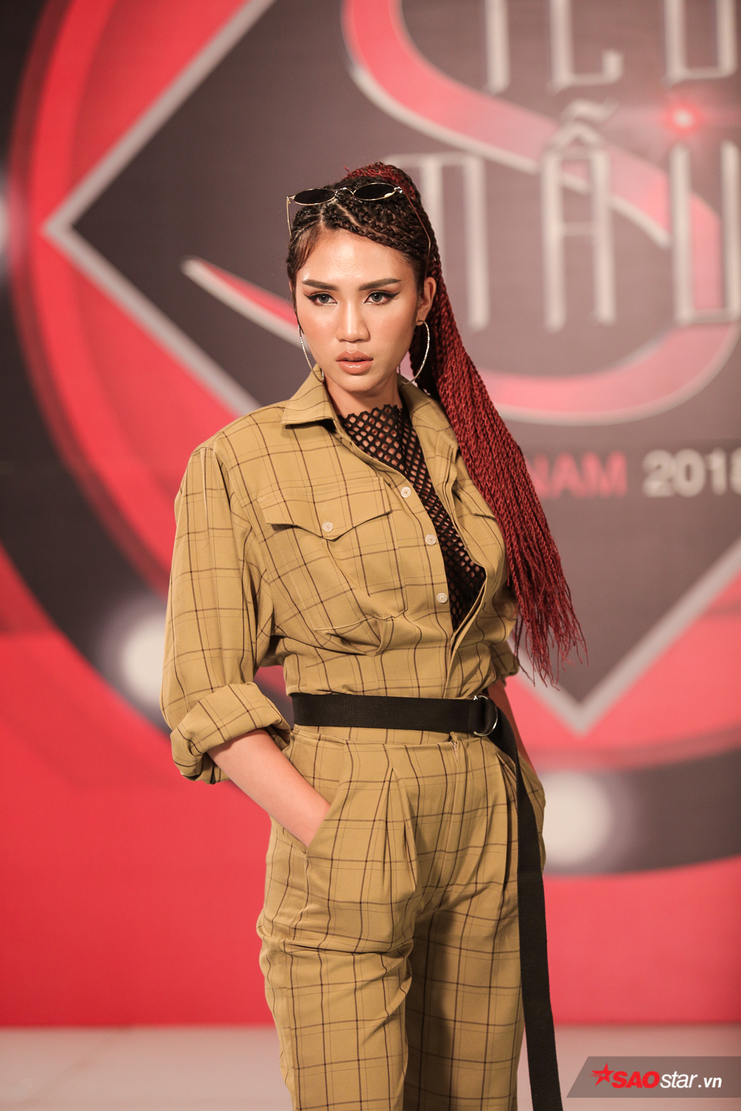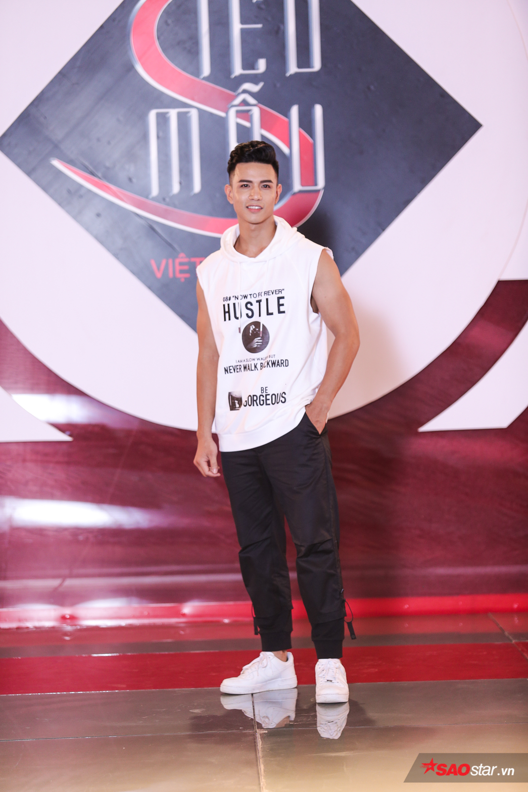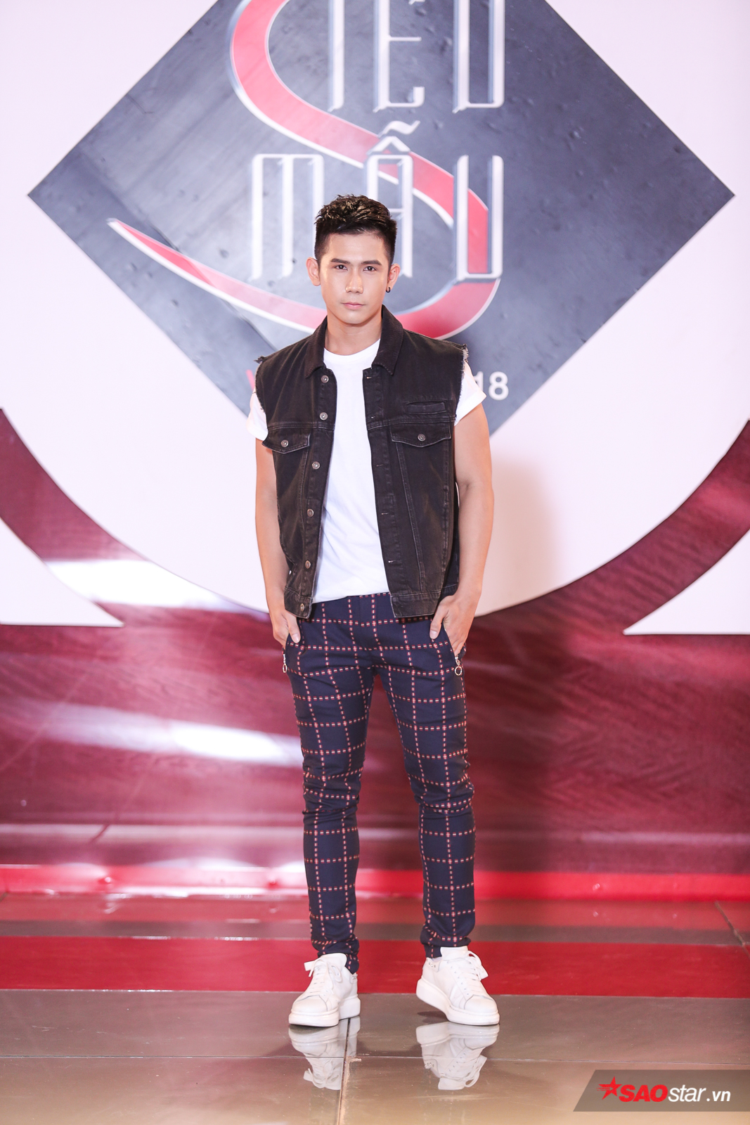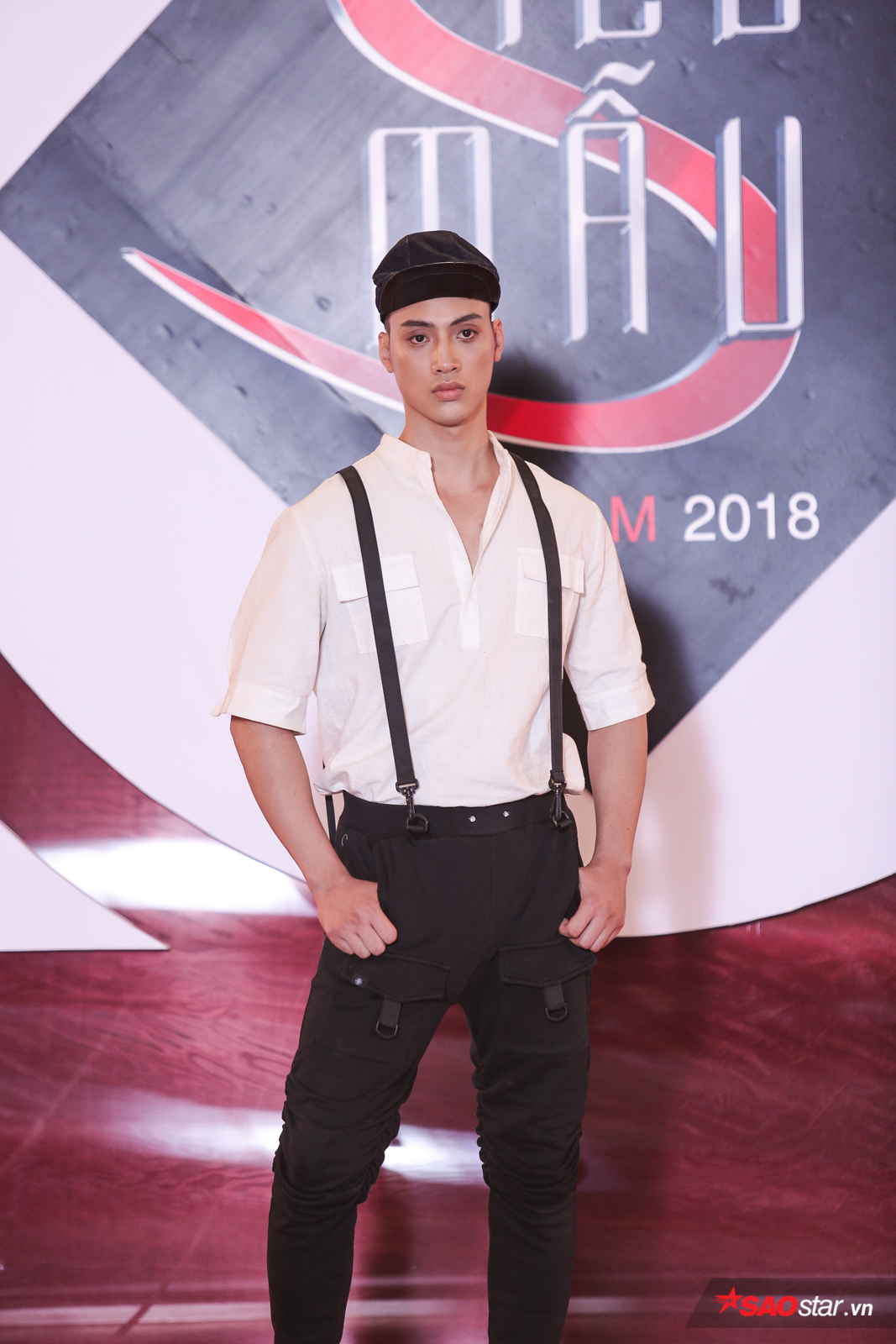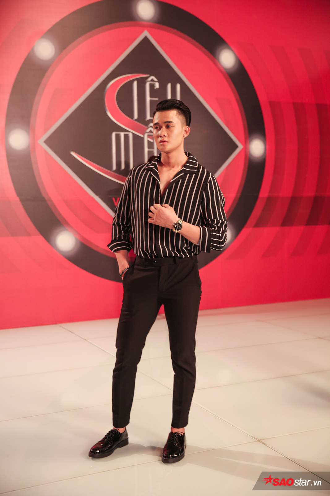 Công Sơn với trang phục suit nổi bật là áo lưới đen bên trong khoe cơ thể rắn chắc