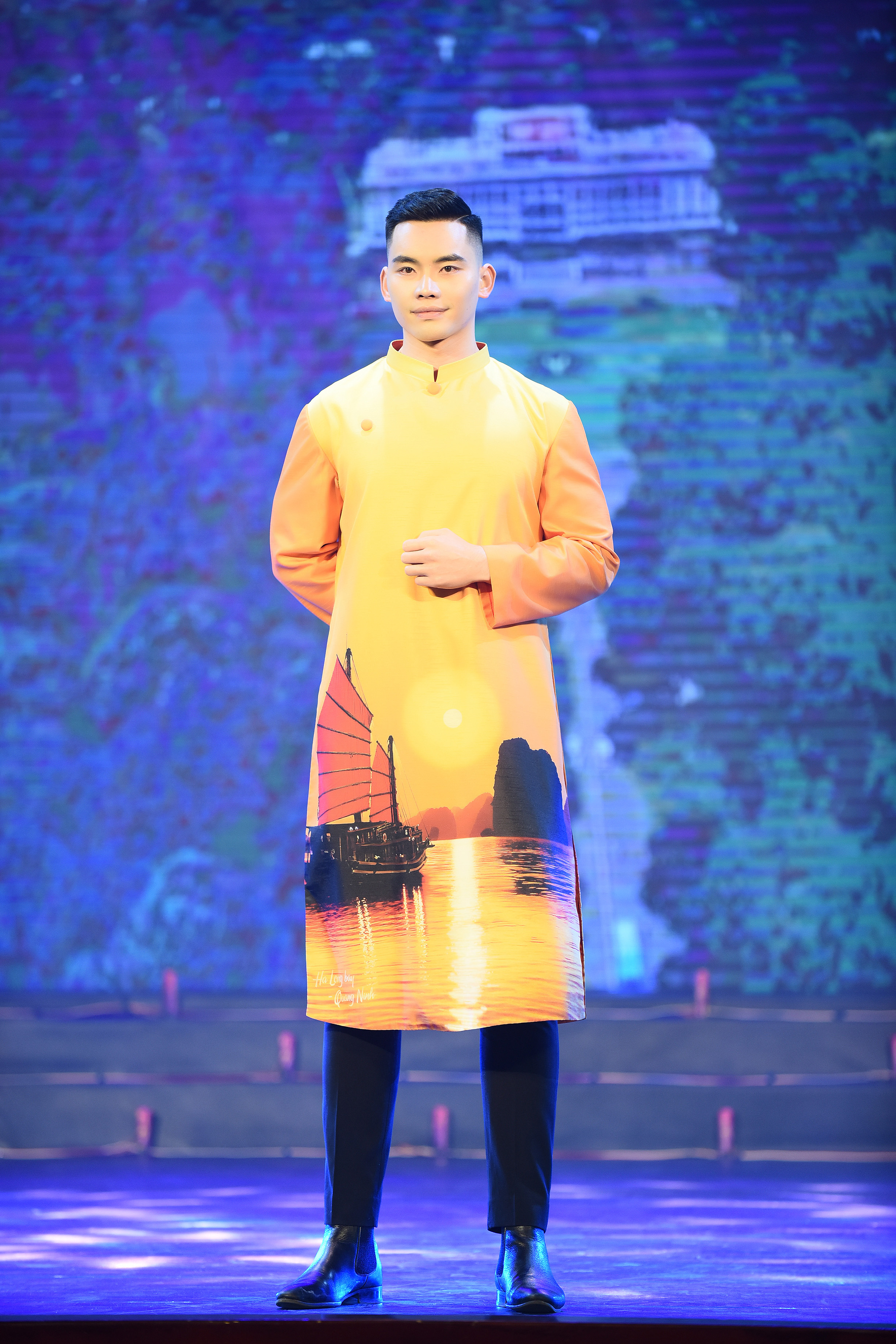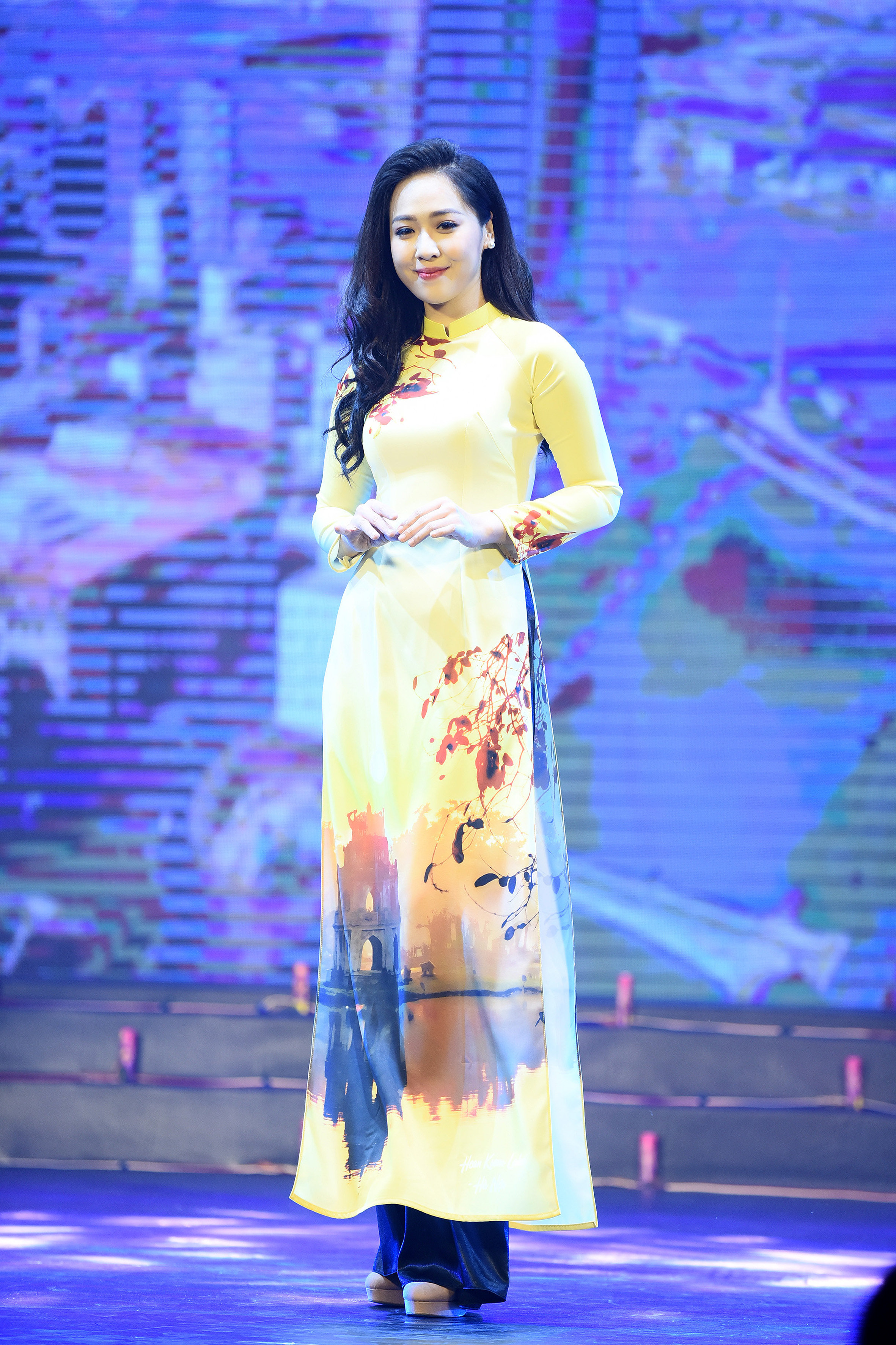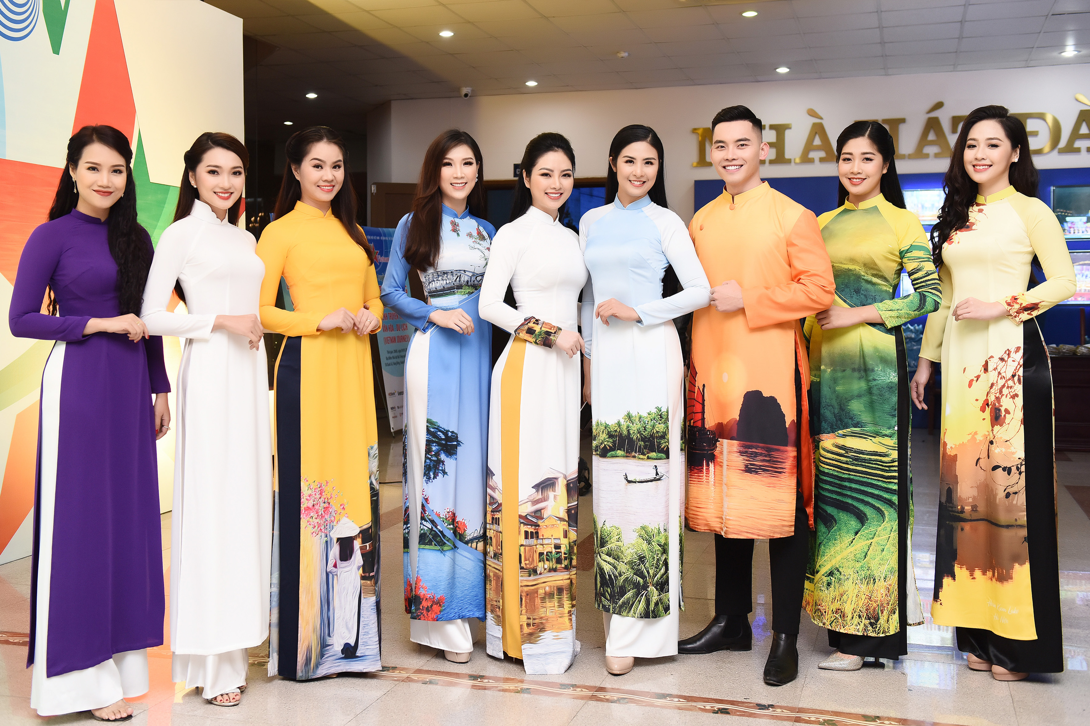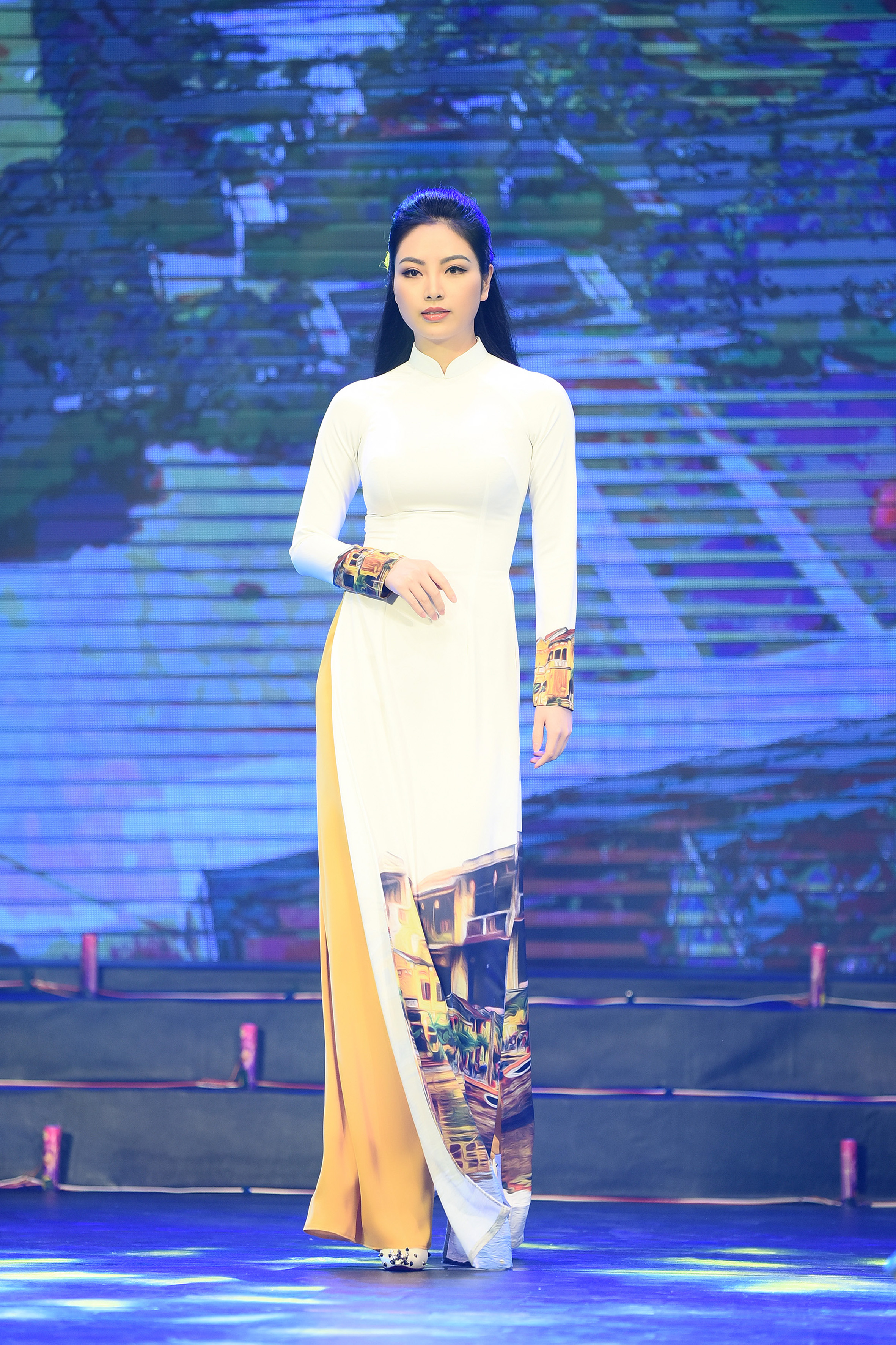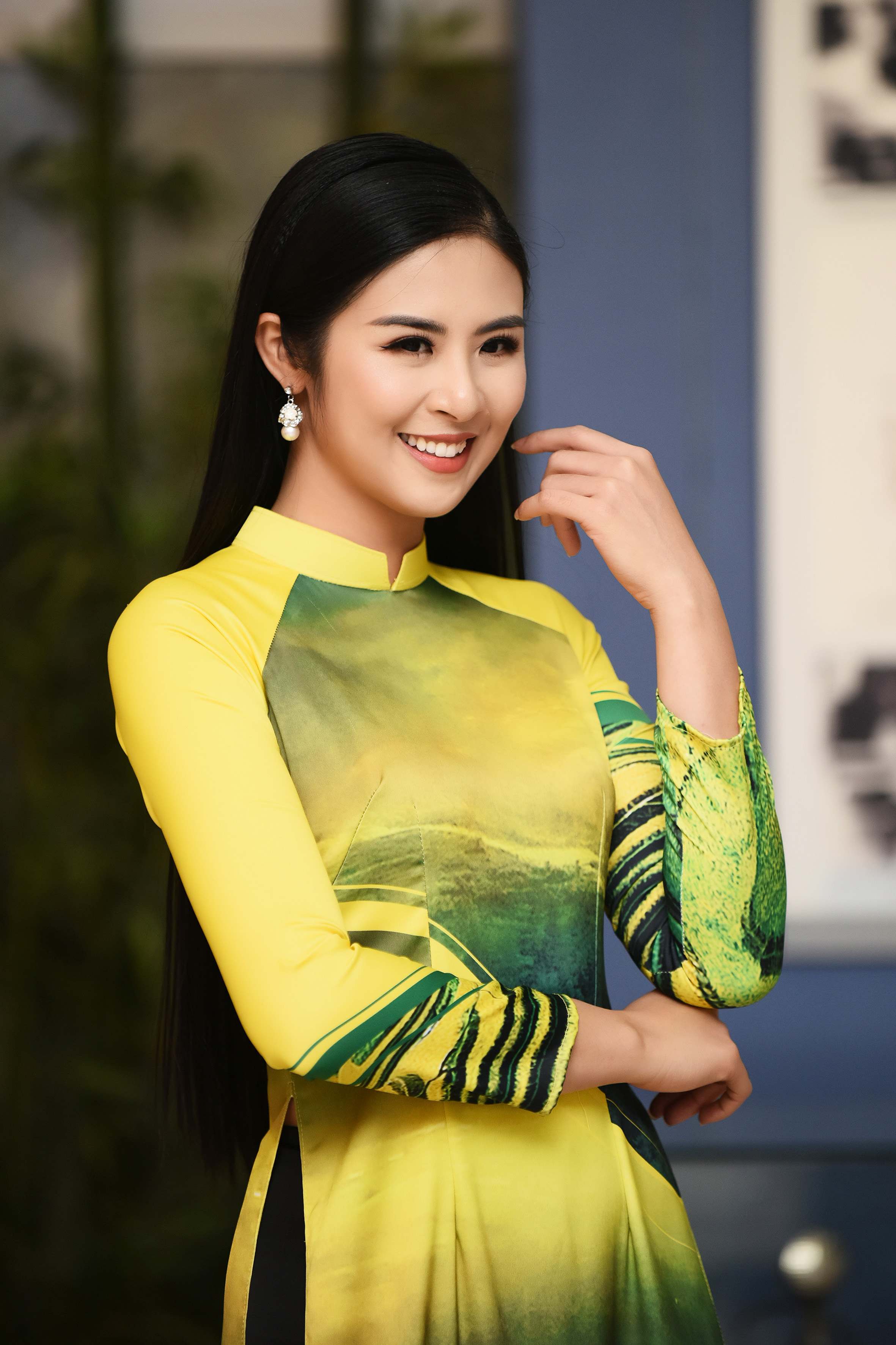 Trong BST mới lần này của mình, Hoa hậu Ngọc Hân lựa chọn những hình ảnh quen thuộc - đây đều là những danh lam thắng cảnh, vẻ đẹp thiên nhiên trên khắp mọi miền Tổ quốc như Tháp Rùa, vịnh Hạ Long, ruộng bậc thang, cầu Trường Tiền, cầu Vàng, phố cổ Hội An, chợ nổi miền Tây… để in lên tà áo dài.