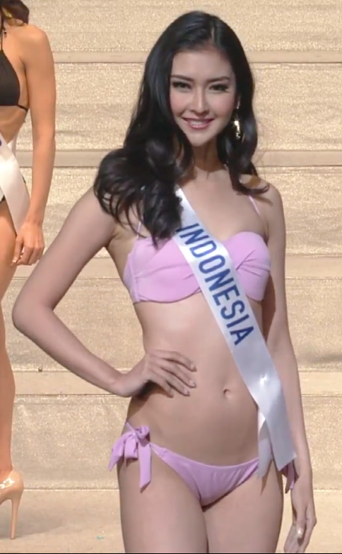 Không chỉ sở hữu gương mặt đẹp, hoa hậu Indonesia còn có ngoại hình chuẩn người mẫu, kèm phong thái cuốn hút. Ở vòng thi thể hình, cô còn khéo léo chọn trang phục bikini màu sáng, mang đến hình ảnh tươi trẻ.