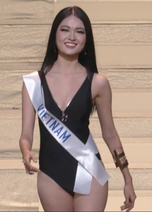 Với thần thái rạng rỡ, tươi tắn, đại diện Việt Nam tự tin catwalk trong trang phục áo tắm một mảnh tông đen. Song, nhiều khán giả chưa thật sự hài lòng khi Thuỳ Dung diện bộ cánh gam màu kém nổi bật.