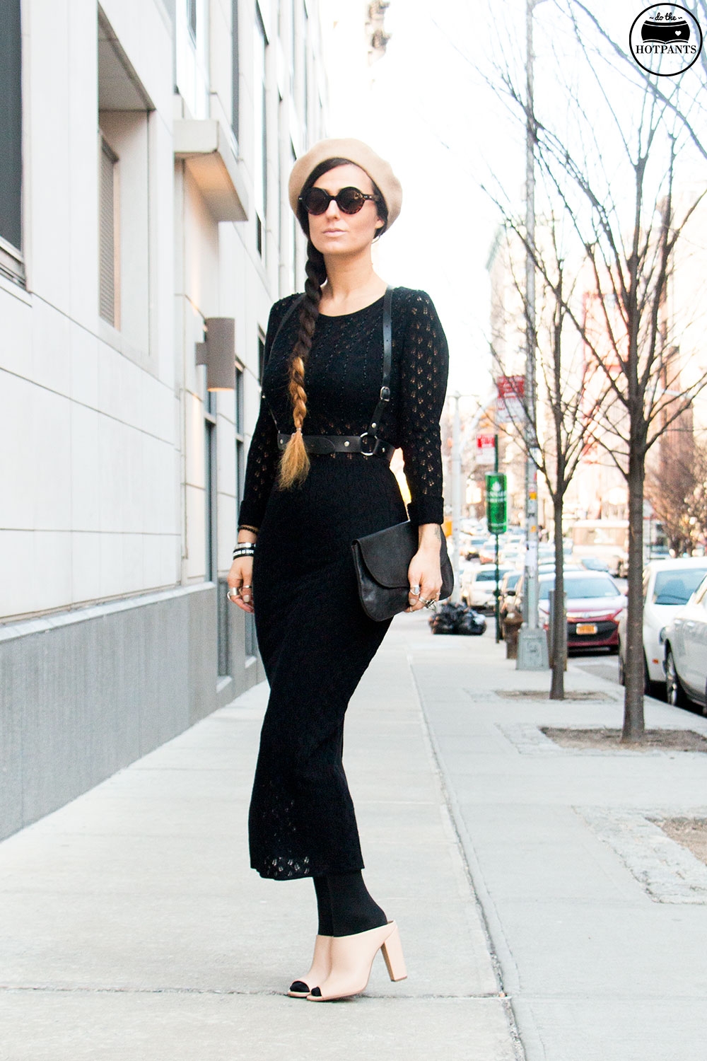 Trong khi đó, cùng chất liệu dây da màu đen khi mix cùng váy dài tông ghi, giúp mang tới diện mạo hài hòa cho người mặc.