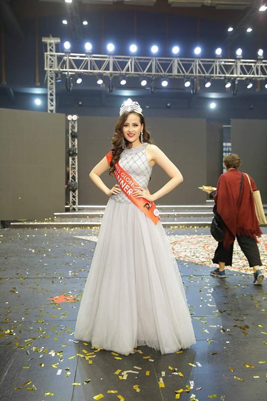 Trong đêm chung kết và đăng quang ngôi vị cao nhất cuộc thi Miss Globe 2017 (Hoa hậu Hoàn cầu 2017), Tân Hoa hậu Khánh Ngân đã mặc chiếc váy quen thuộc này để trả lời phỏng vấn. Thiết kế giúp cho nhan sắc Việt tự tin tỏa sáng trên đấu trường nhan sắc quốc tế.