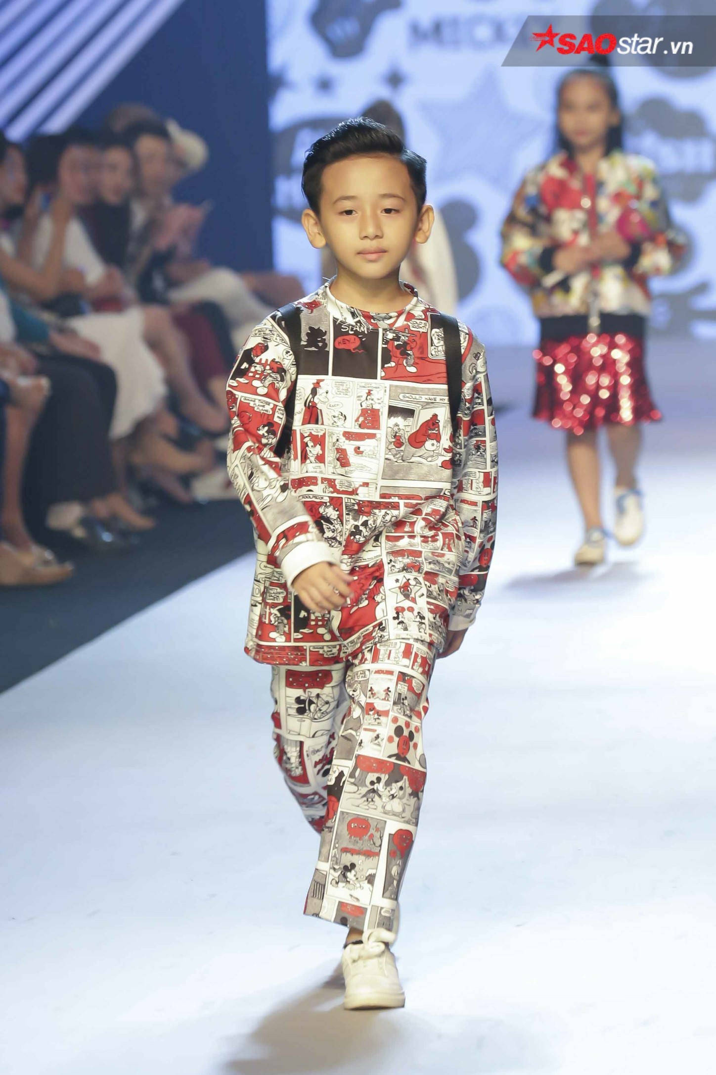 Cả cây áo sweater cùng quần dài vô cùng trẻ trung, tinh nghịch. Không chỉ trẻ em, nhiều khán giả người lớn cũng phải “phát cuồng” vì những sáng tạo của anh.