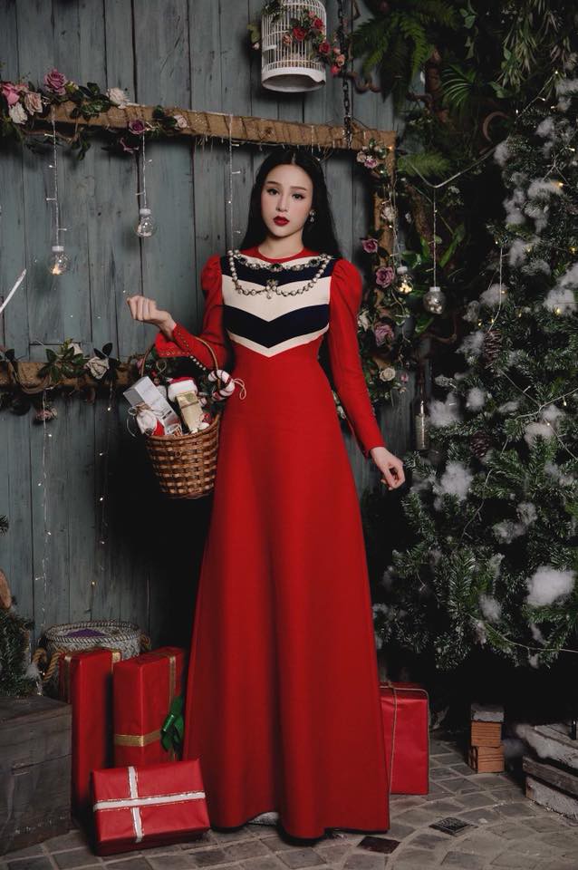 Mới đây, trong không khí Noel ngập tràn khắp nơi, cô nàng hot girl Hà thành năm nào đã “chiêu đãi” những người hâm mộ mình một bộ ảnh Giáng sinh ngập trong sắc đỏ. Cô khoác lên mình bộ đầm hàng hiệu màu đỏ rực cùng với cách trang điểm cầu kỳ.